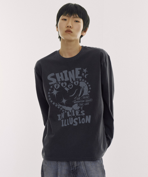 CUPID RABBIT STRIPE RAGLAN LS TEE GREY