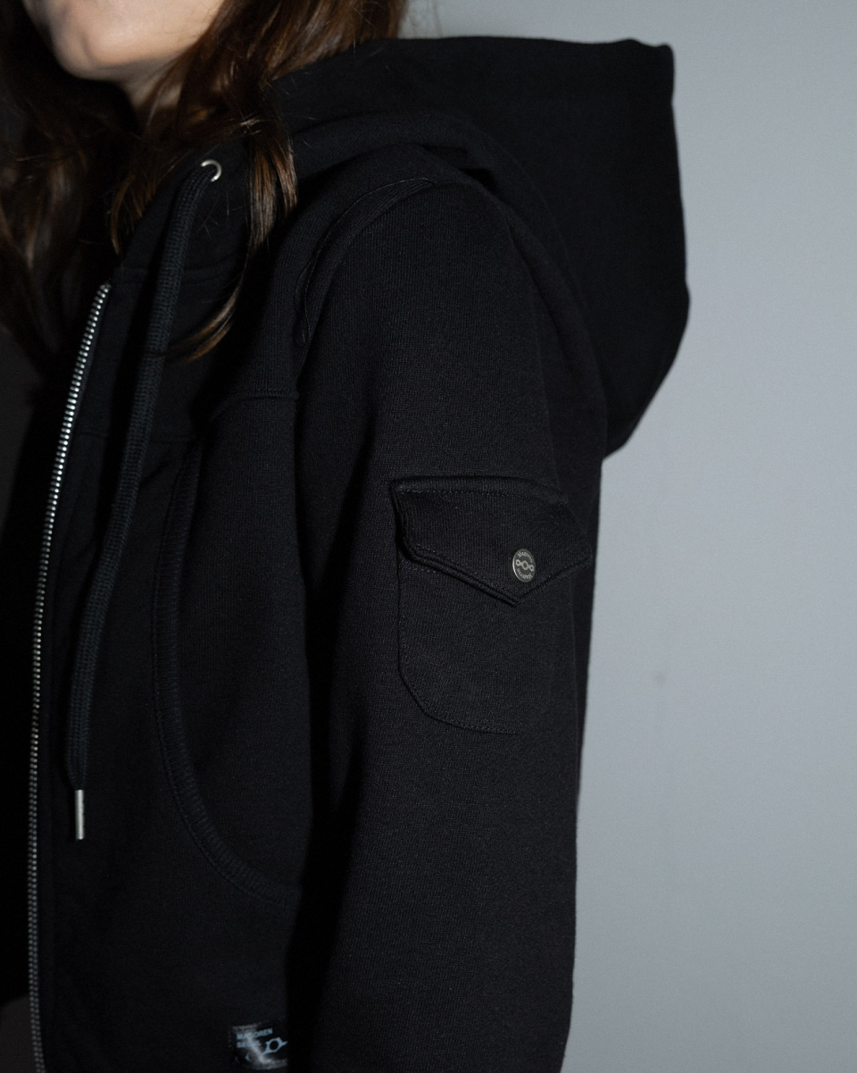 ・소매 미니 카고 포켓 디테일 / 레이저 각인 로고 심볼 스냅