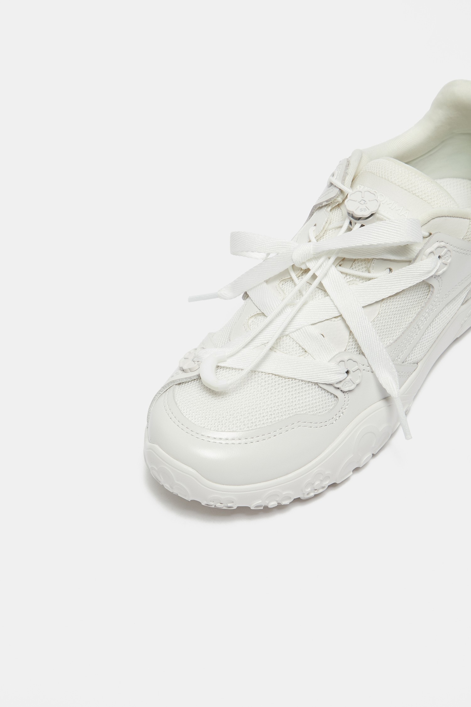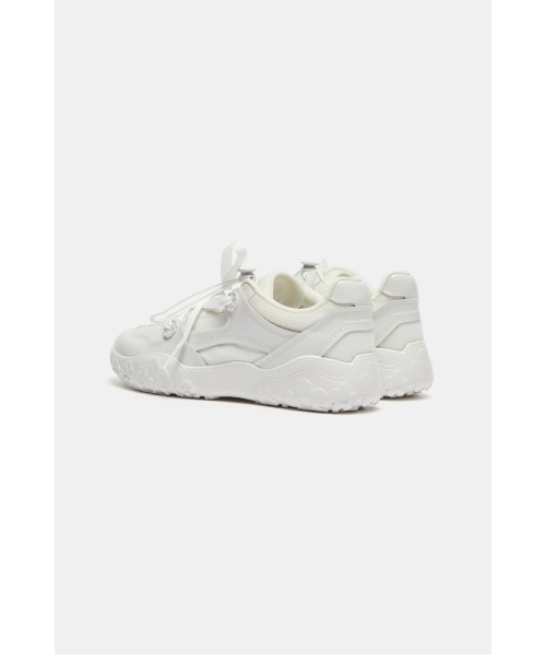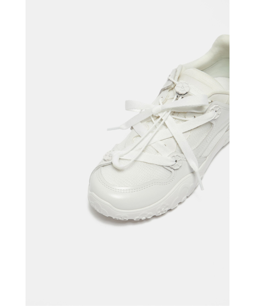 - 비대칭으로 교차되는 신발 끈 위치가 시선을 끌어,