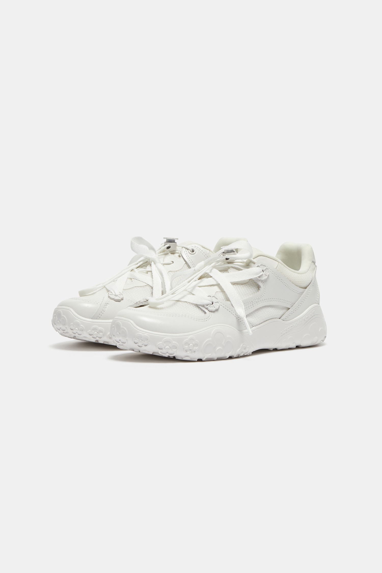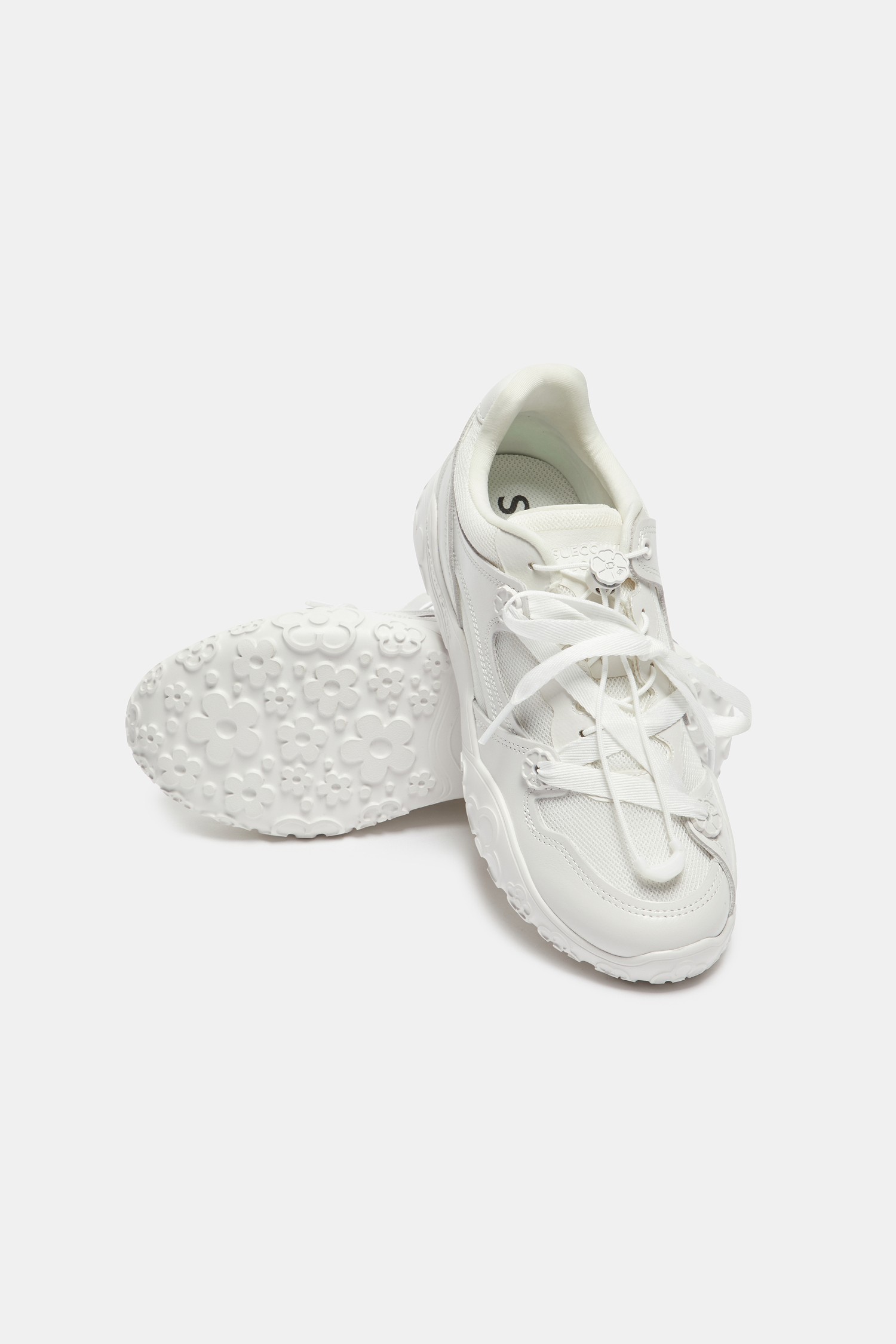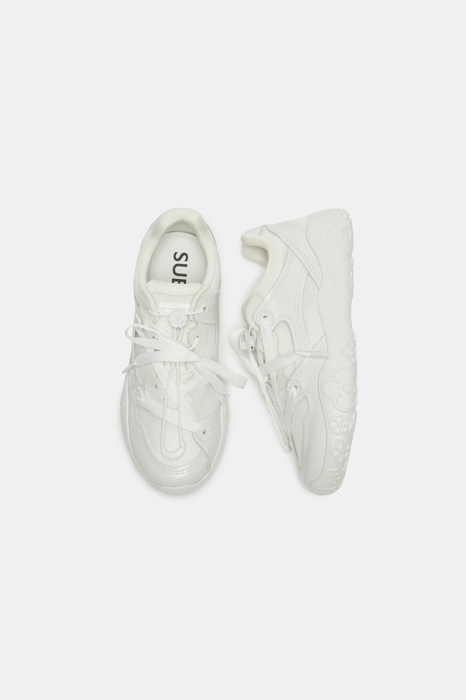 - 아웃솔에는 플라워 패턴이 은은하게 드러나 걸을 때마다 위트 있는 포인트를 더해줌.