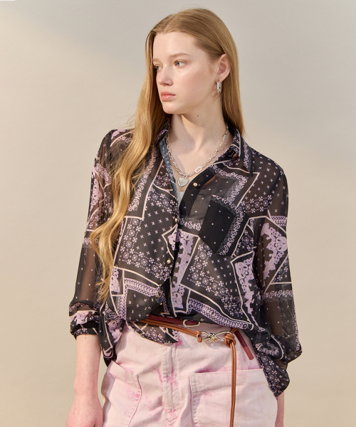 반다나 페이즐리 시어 셔츠 블라우스
