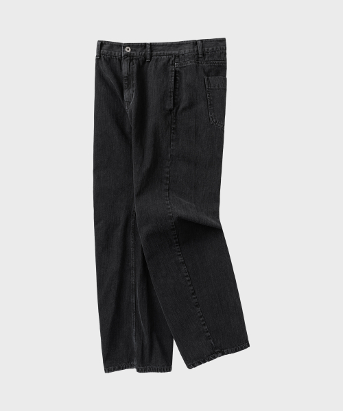가먼트 다잉 커브드 데님 팬츠_DARK GREY
