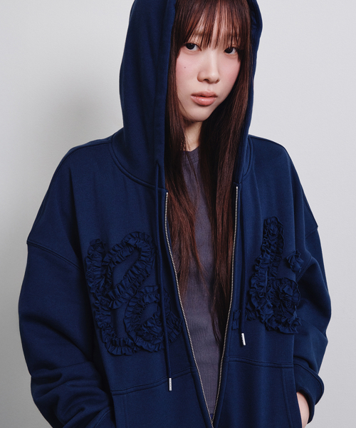 CELI FRILL HOODIE ZIP-UP_NAVY