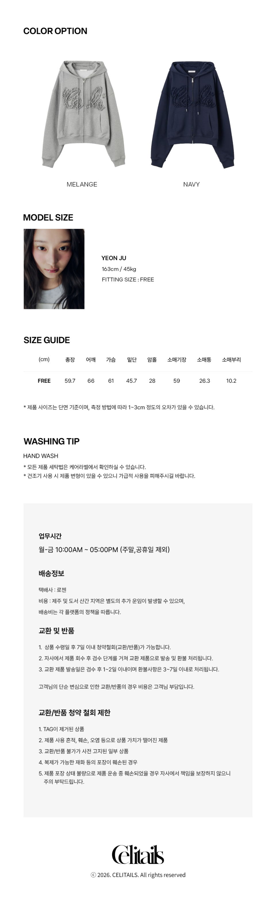 셀리테일즈(CELITAILS)는 러블리한 무드에 로맨틱한 디테일을 더해, 감각적인 실루엣과 다채로운 컬러로 일상에 설렘과 특별함을 전하는 브랜드입니다.