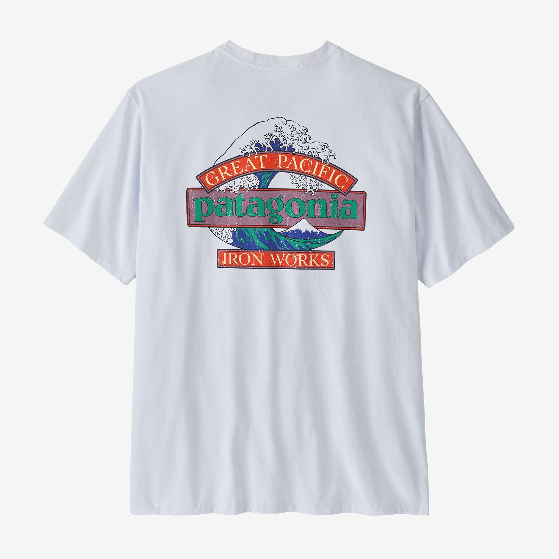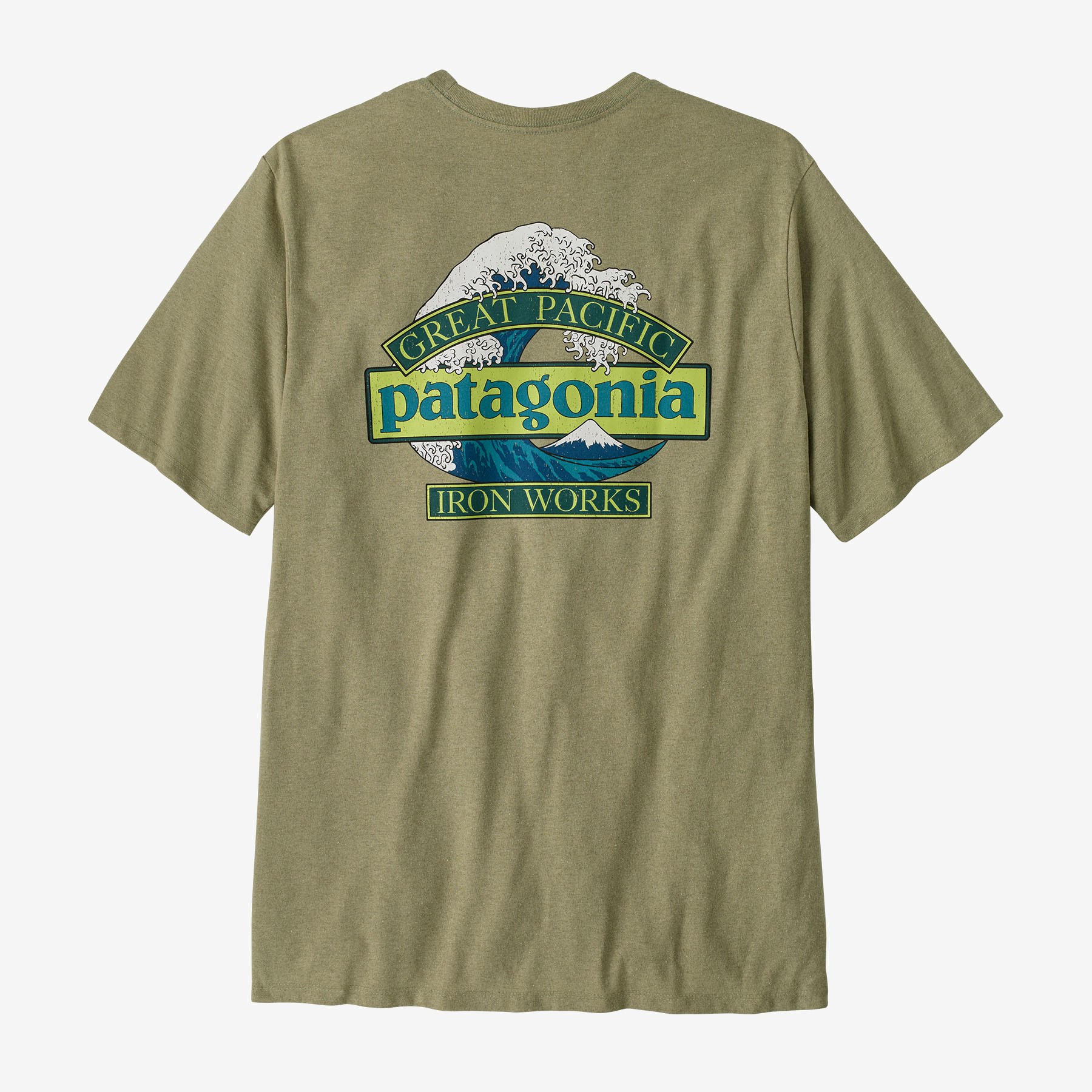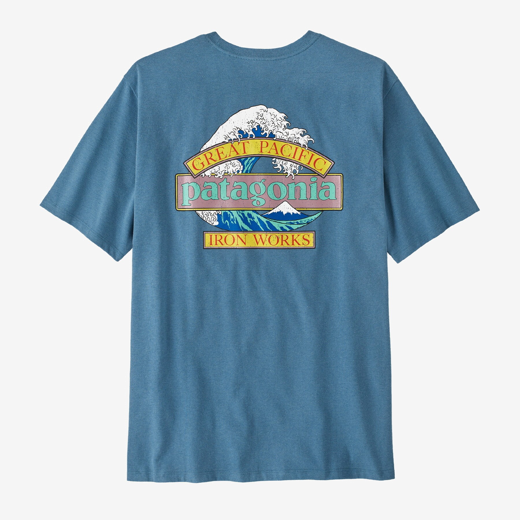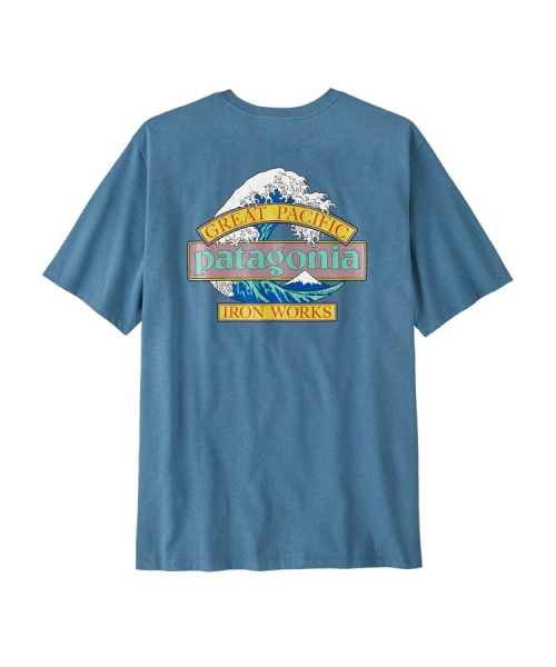 그레이트 웨이브스 로고는 파타고니아 워드마크에 호쿠사이의 상징적인 파도와, 파타고니아 첫 리테일 스토어 이름인 Great Pacific Iron Works를 결합한 디자인입니다. 이 첫 매장은 캘리포니아 벤투라의 멋진 파도 명소에서 걸어서 갈 수 있을 만큼 가까운 곳에 있습니다. 부드럽고 내구성이 뛰어난 리사이클 면/리사이클 폴리에스터 저지 50/50 혼방 소재로 제작된 클래식한 긴팔 크루넥 티셔츠인 멘즈 롱 슬리브드 그레이트 웨이브스 리스판서빌리-티®에 이 프린팅을 적용했습니다. 100% 리사이클 소재로 만든 제품으로, 버려진 병과 자투리면을 활용하여 신규 소재 사용에 대한 의존도를 줄였습니다. 더 제대로 알고, 더 나은 선택을 합니다.(Know better; do better.)