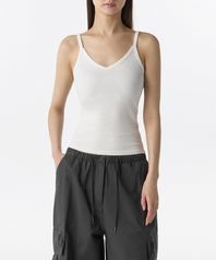 우먼즈 브이 넥 슬리브리스 탑 [화이트]