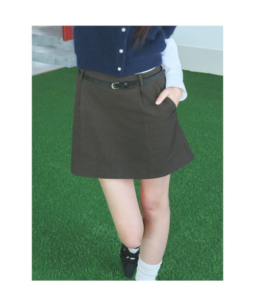 벨티드 디테일이 돋보이는 미니스커트입니다. 턱 디테일의 A라인 실루엣과 폴리 혼방 소재로 제작돼 가볍게 착용할 수 있습니다. 같은 원단으로 제작된 재킷(356211WM4)과 셋업으로 매치하면, 오피스룩이나 격식 있는 착장으로도 활용할 수 있습니다.