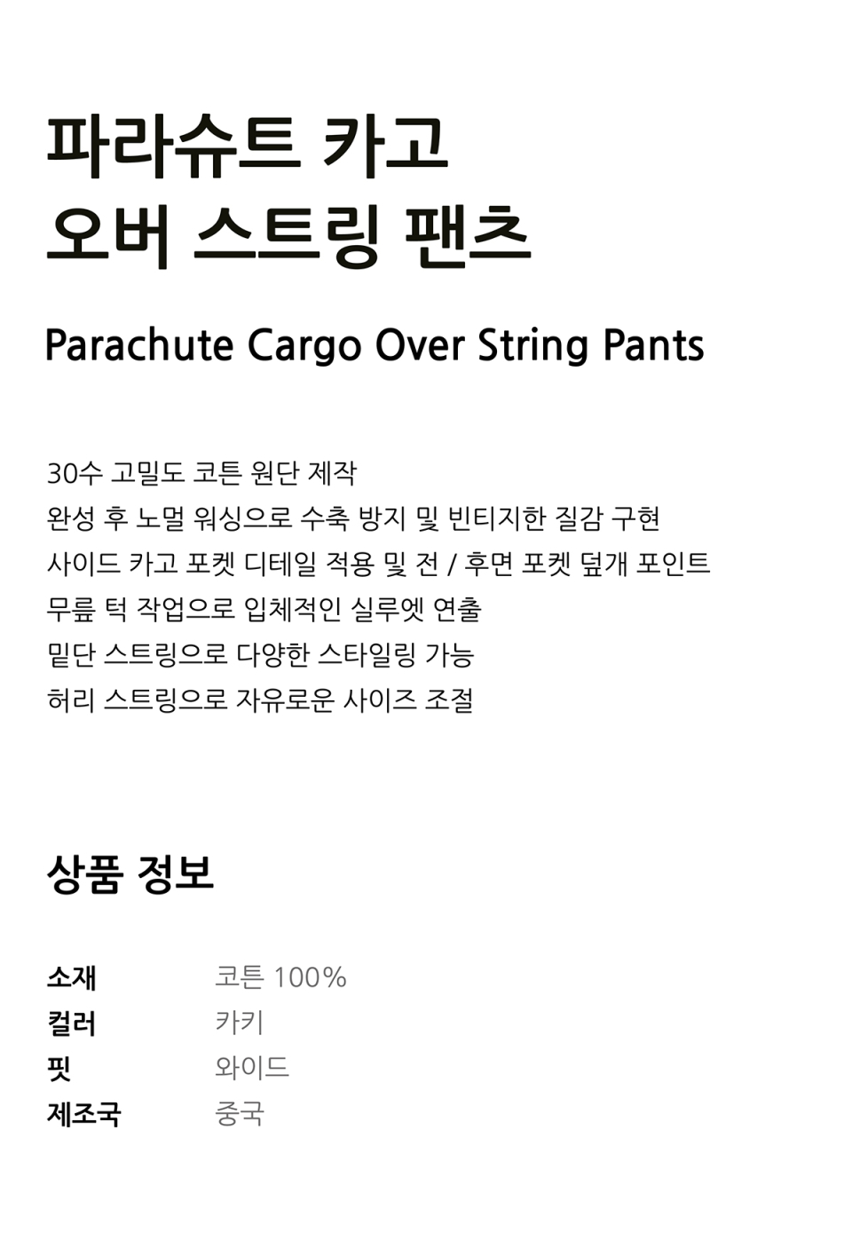 파라슈트 카고 오버 스트링 팬츠 [카키]