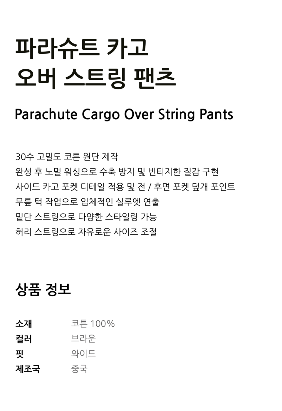 파라슈트 카고 오버 스트링 팬츠 [브라운]