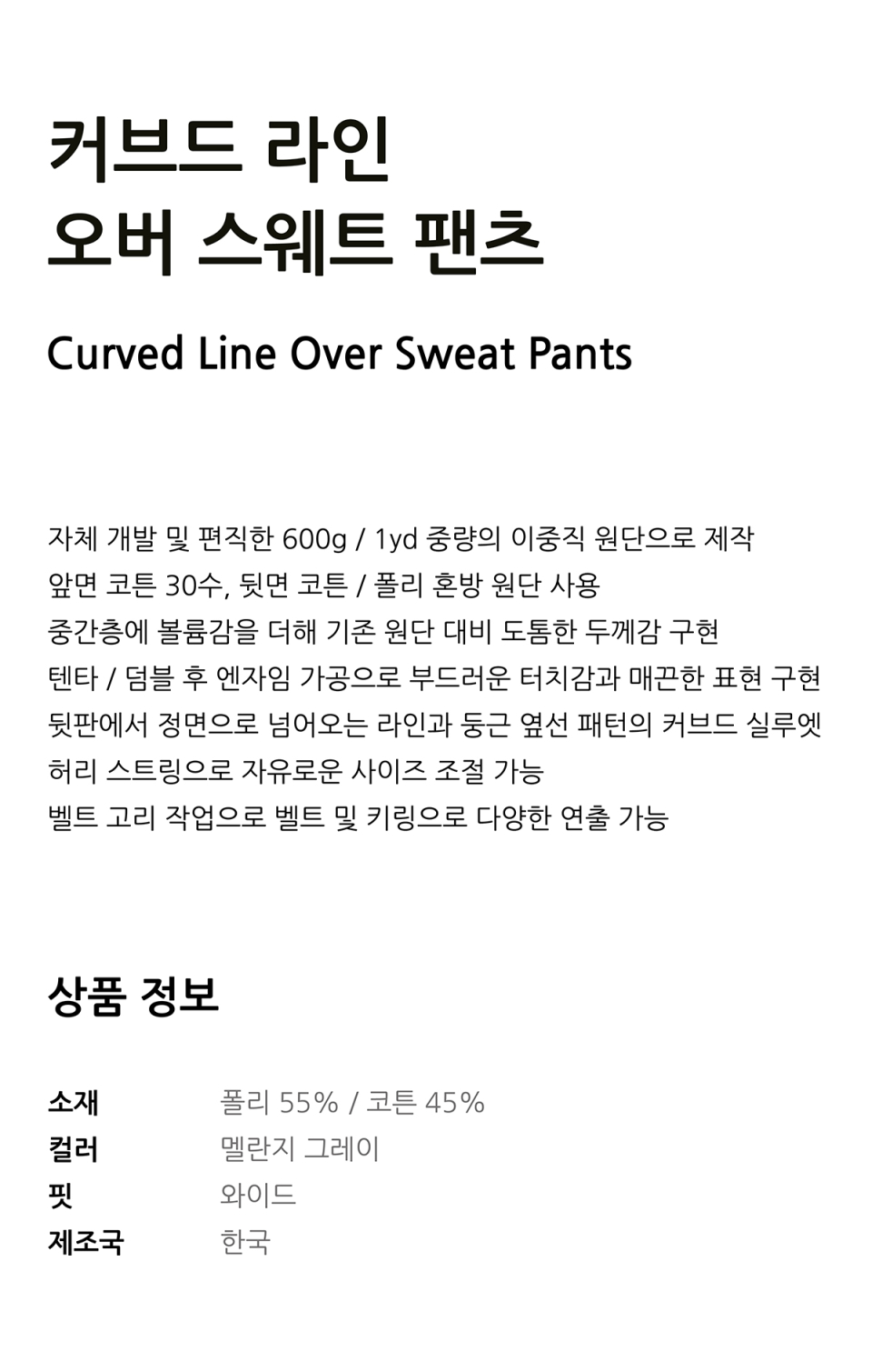 커브드 라인 오버 스웨트 팬츠 [멜란지 그레이]