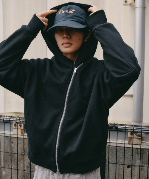 풀 집 핑거 홀 스웨트 셔츠 [블랙]