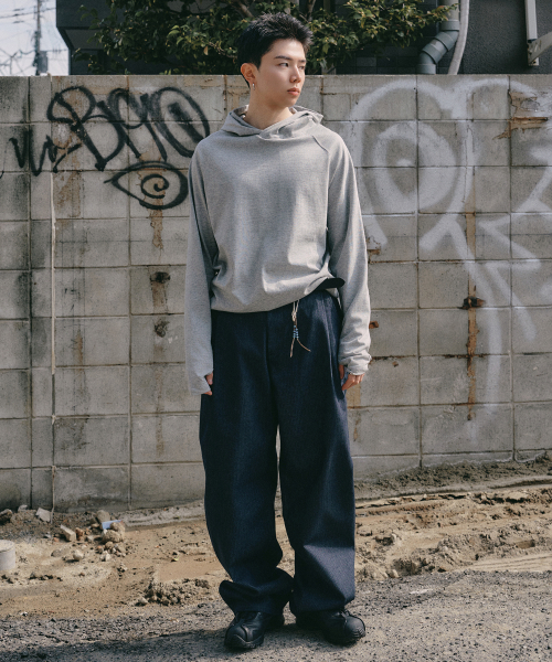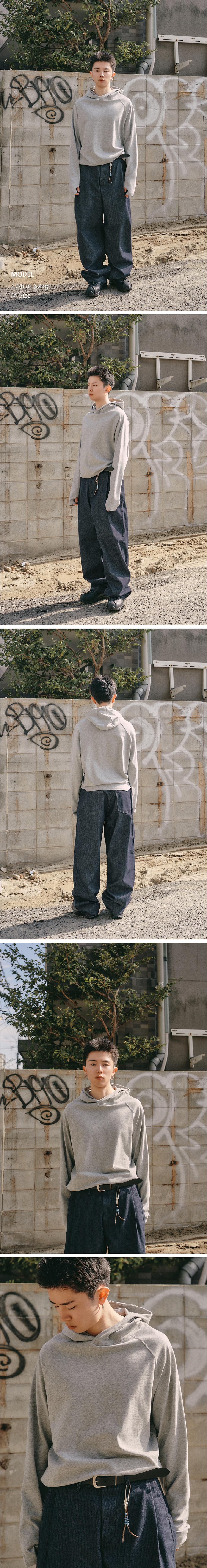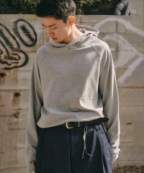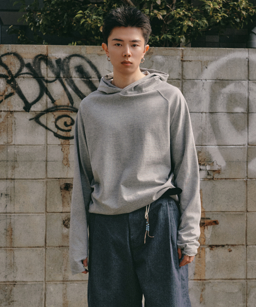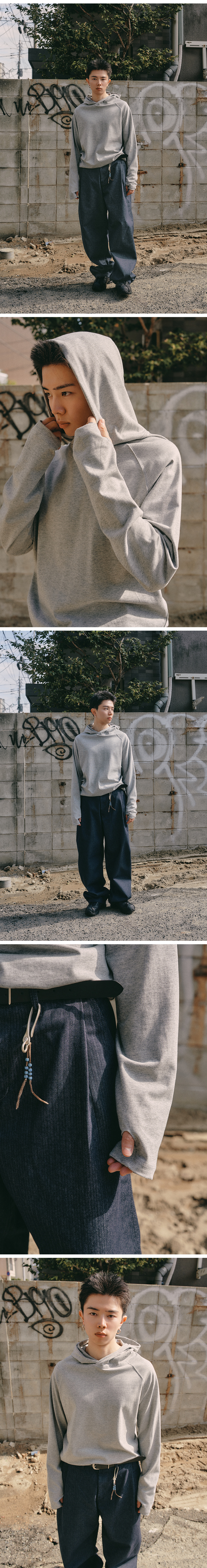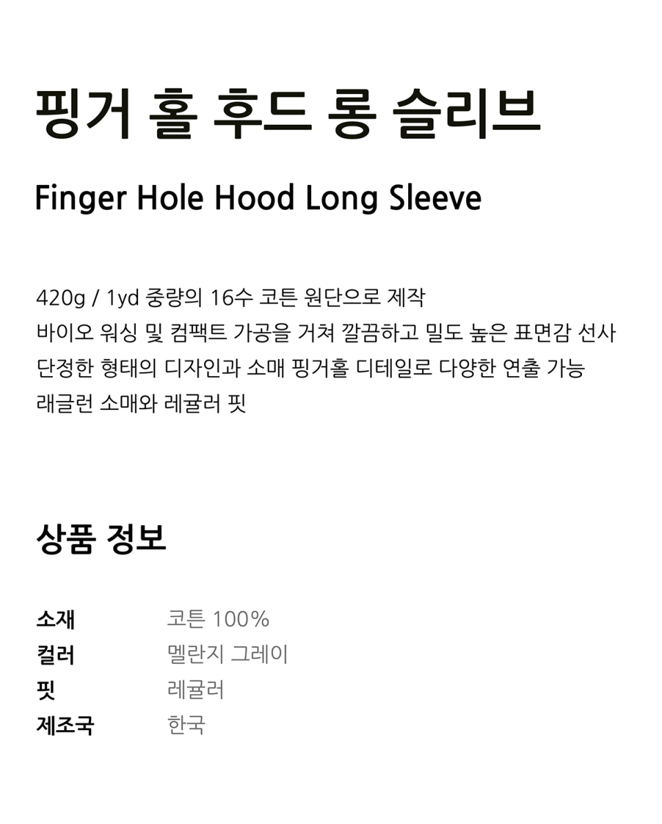 핑거 홀 후드 롱 슬리브 [멜란지 그레이]