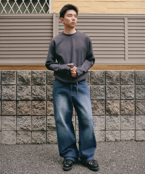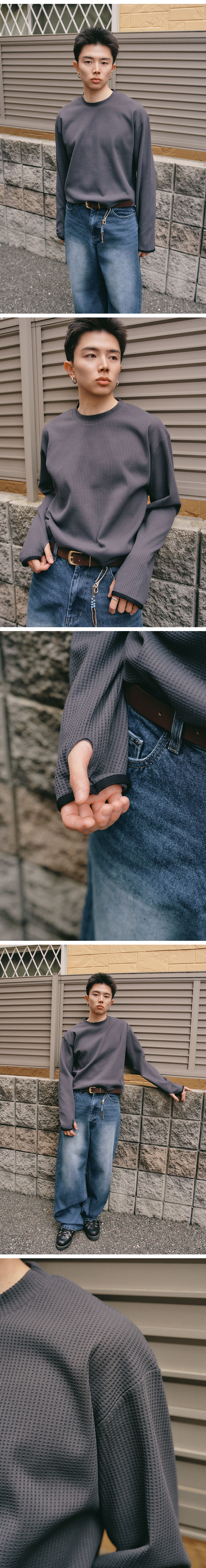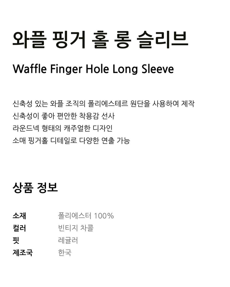 와플 핑거 홀 롱 슬리브 [빈티지 차콜]