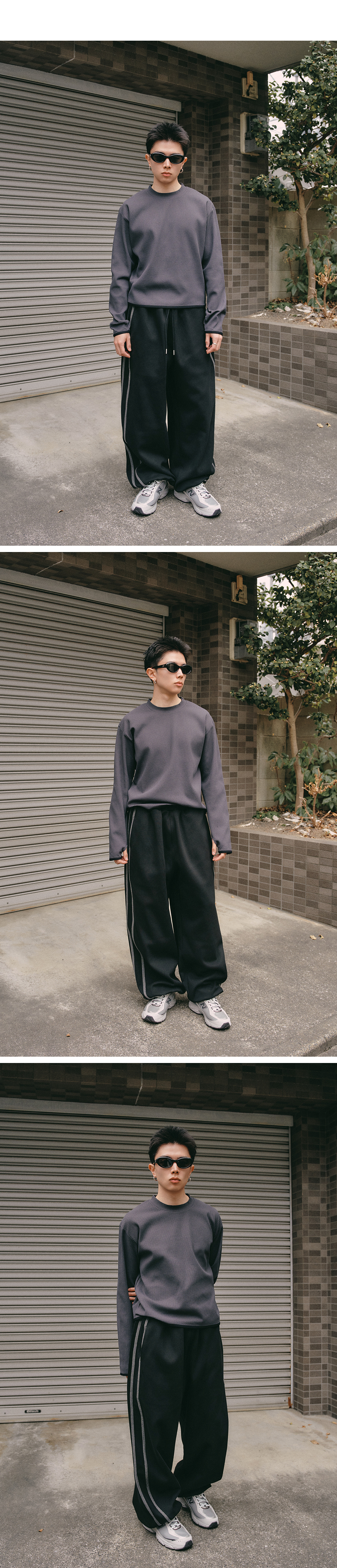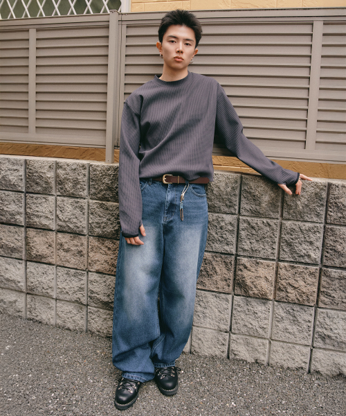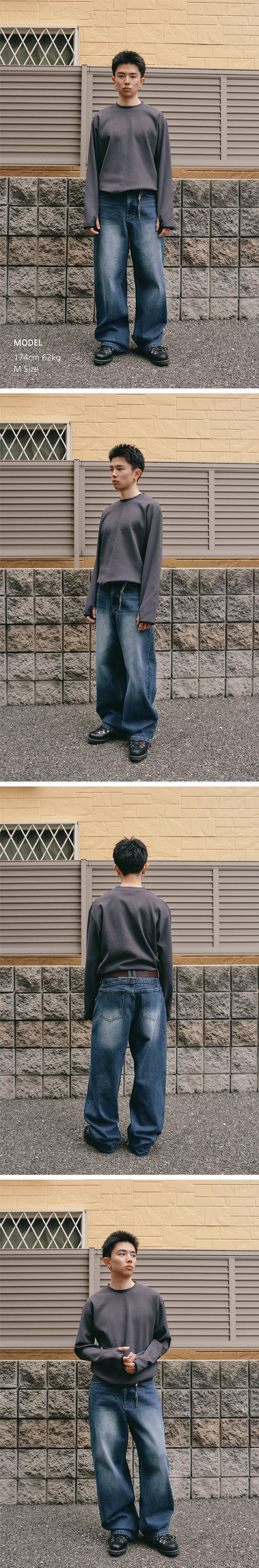 와플 핑거 홀 롱 슬리브 [빈티지 그레이]