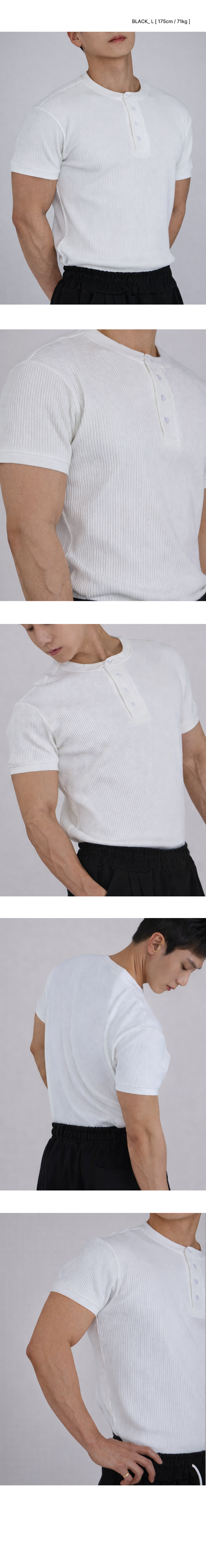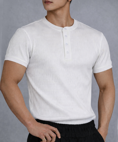프리미엄 머슬핏 헨리넥 하프 티셔츠[화이트]