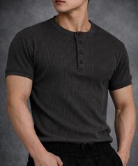 프리미엄 머슬핏 헨리넥 하프 티셔츠[차콜]