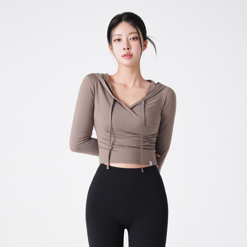SWC26005-03 셔링 랩 후드 커버업 애쉬브라운
