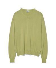 코튼 원사를 사용해 7게이지로 편직한V 넥 니트 스웨터입니다.