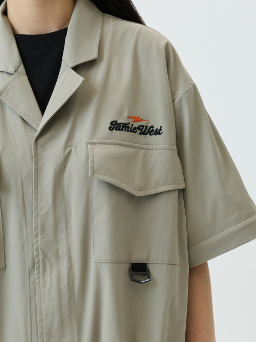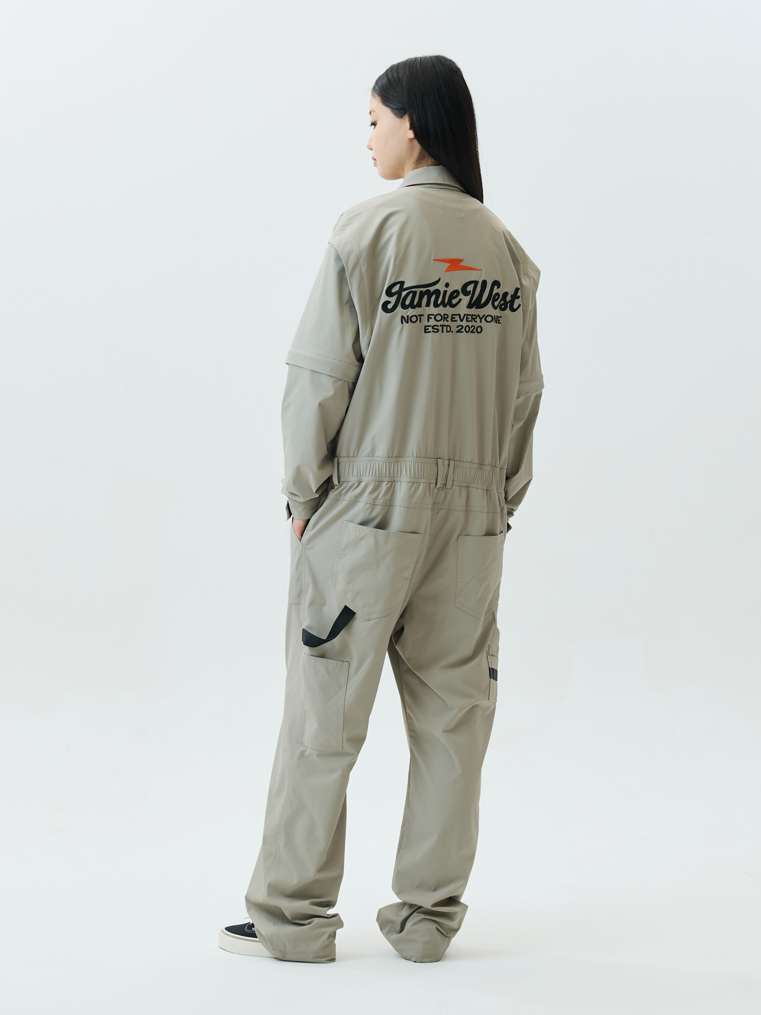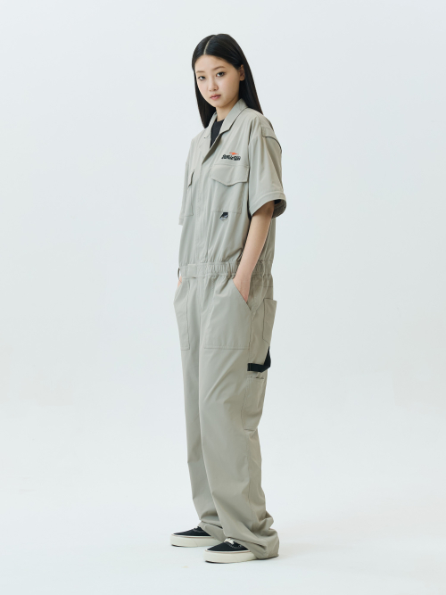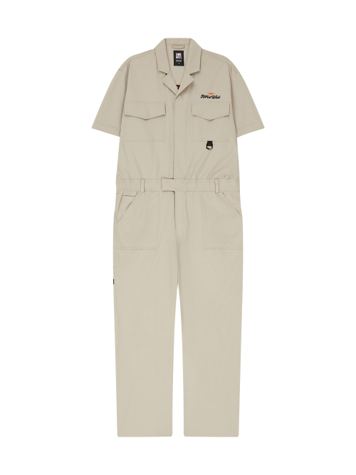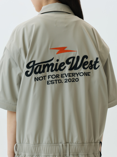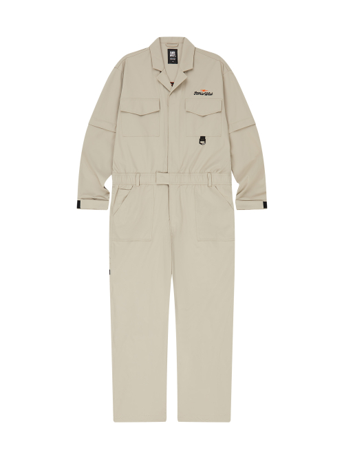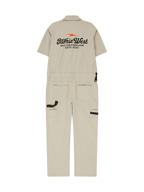 Detachable Sleeve Retro Lettering Jumpsuit