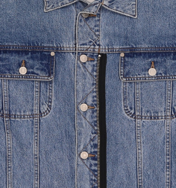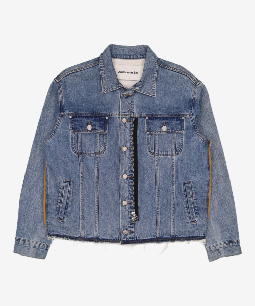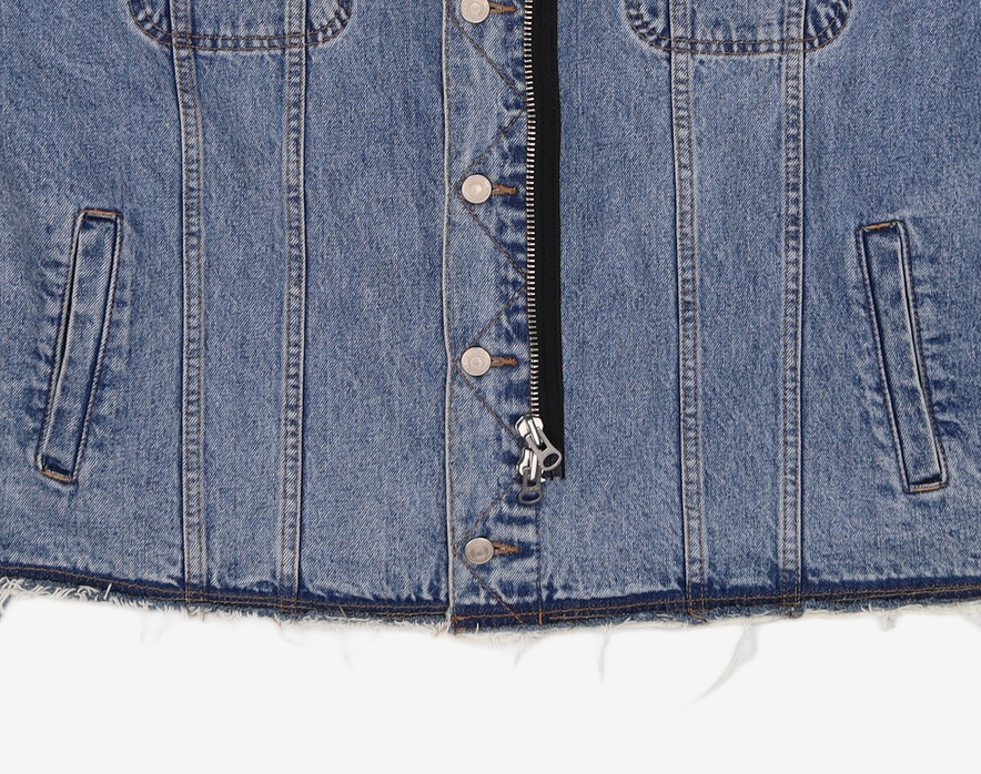 UNISEX ASYMMETRIC LAYERED DENIM JACKET awa747u(BLUE)