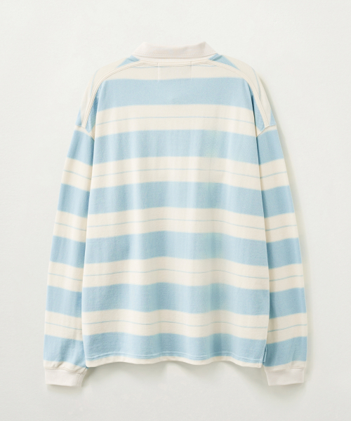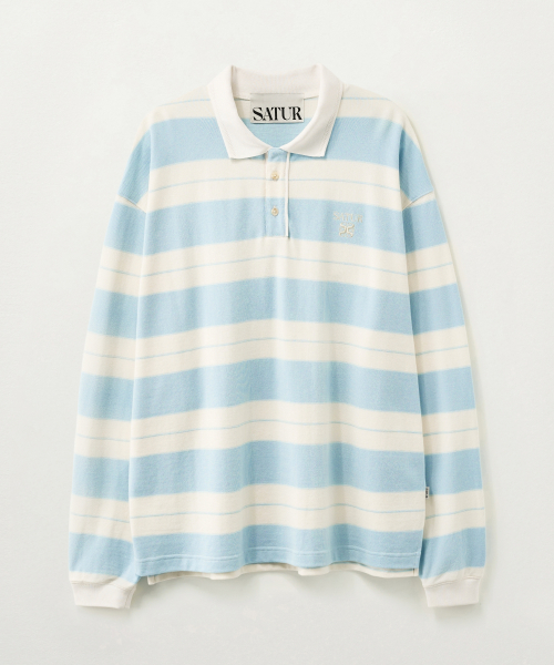 아페로 스트라이프 피케 롱 슬리브 스카이 블루