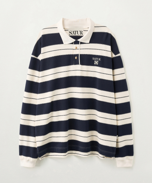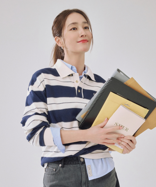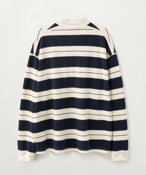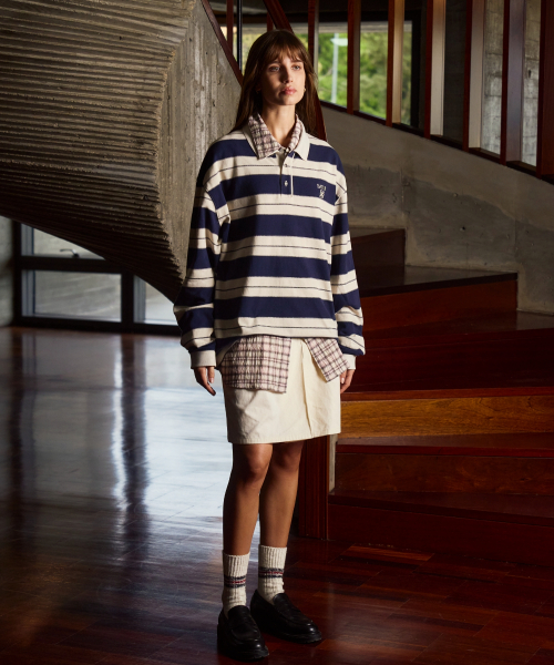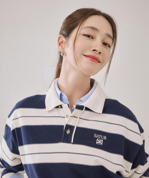 아페로 스트라이프 피케 롱 슬리브 네이비
