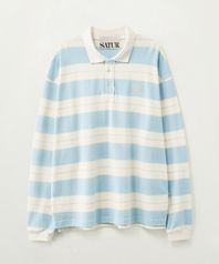 아페로 스트라이프 피케 롱 슬리브 스카이 블루