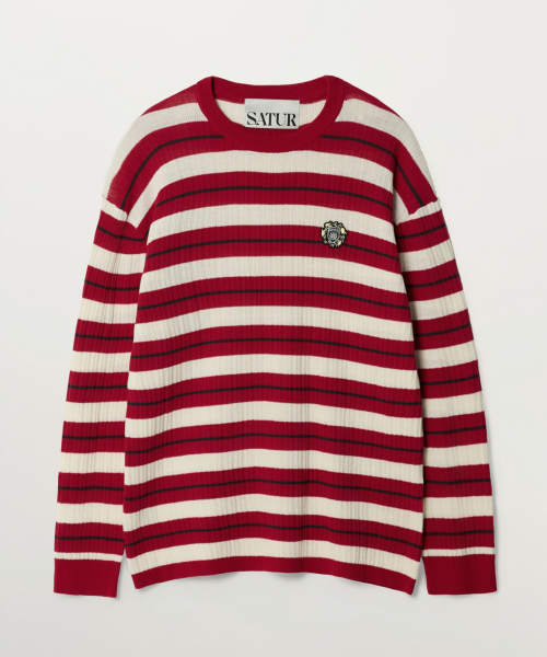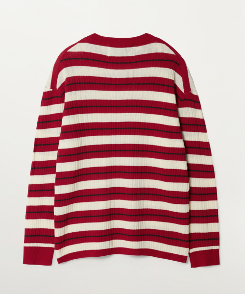 크레스트 로고 스트라이프 니트 레드