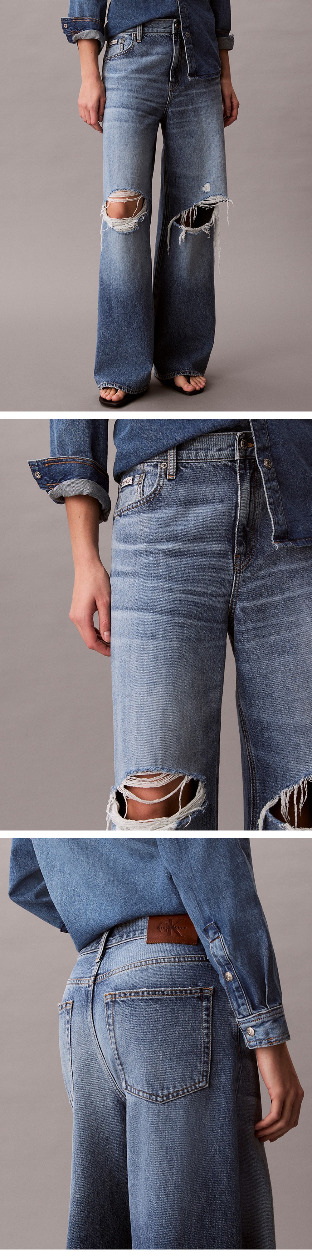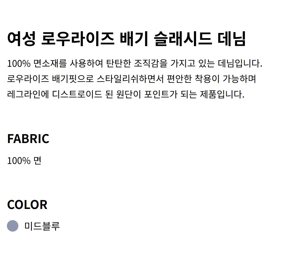 여성 로우라이즈 배기 슬래시드 데님 47F744G SLF