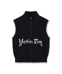 MATIN KIM SPELL POINT KNIT ZIP UP VEST IN BLACK