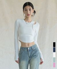 여성 베이직 브이넥 세미크롭 맨투맨 NY (Black)