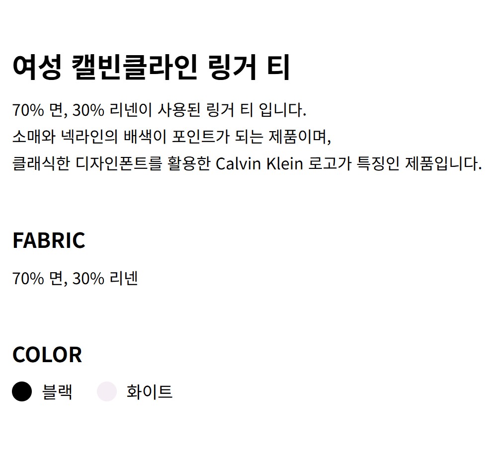 여성 캘빈클라인 링거 반팔 티셔츠 47F891G UB1