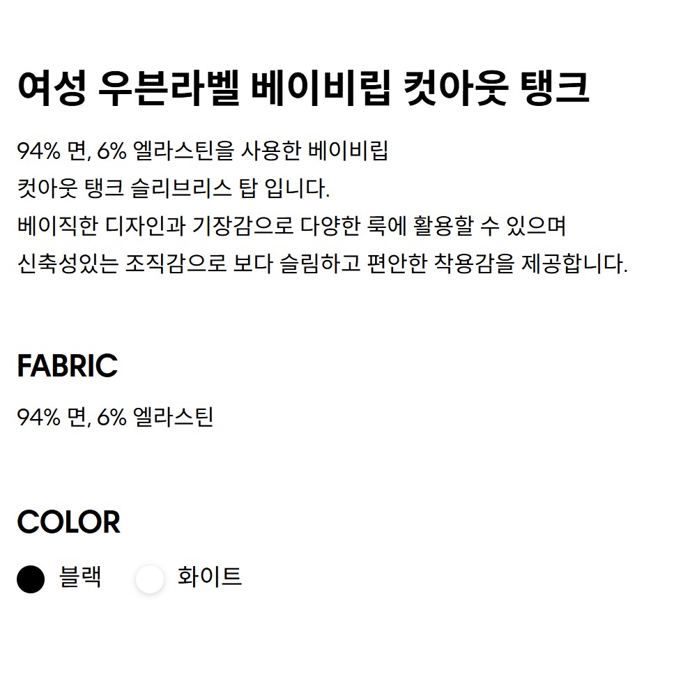 여성 우븐라벨 베이비립 컷아웃 탱크 47F246G YAF