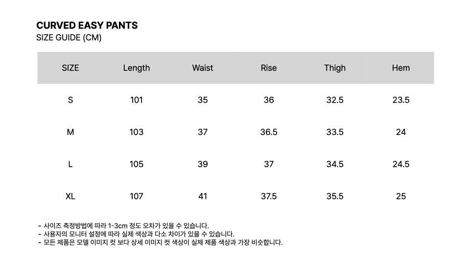 무릎 하단부 입체 패턴 적용으로 여유로운 실루엣.