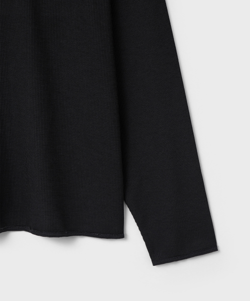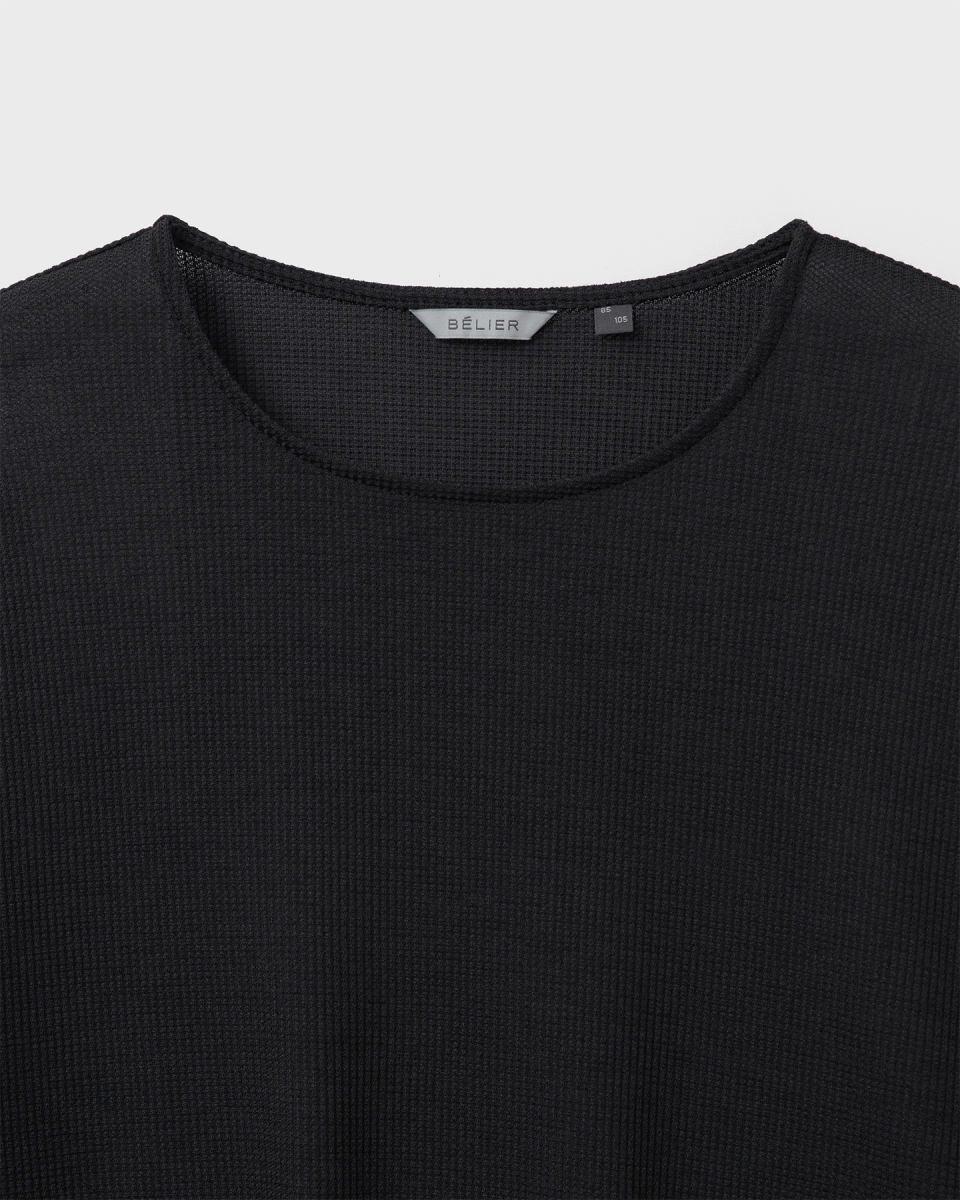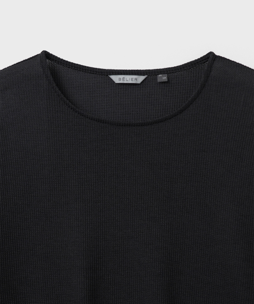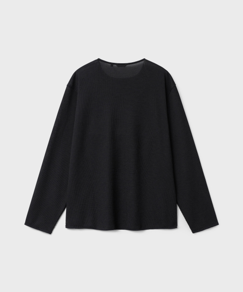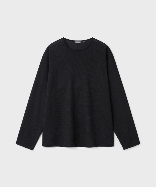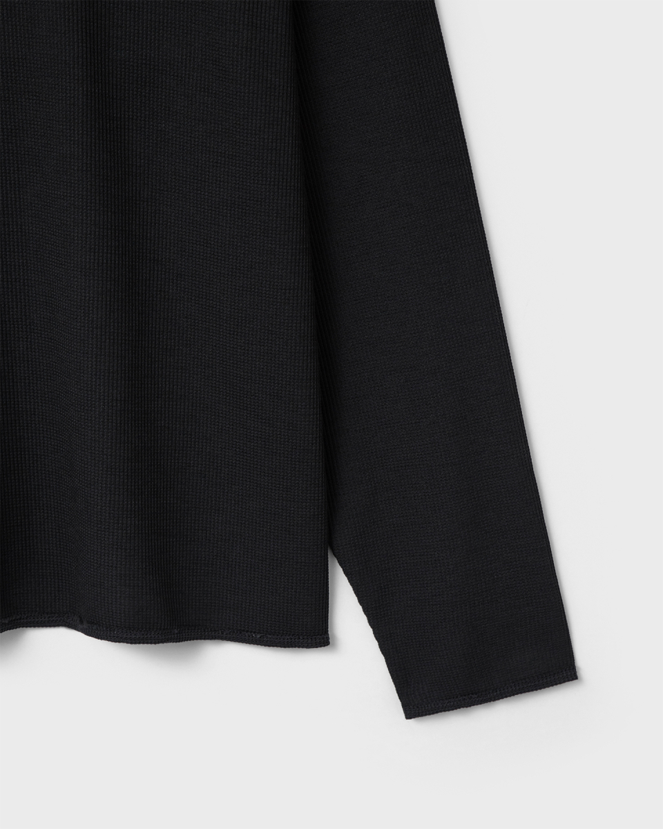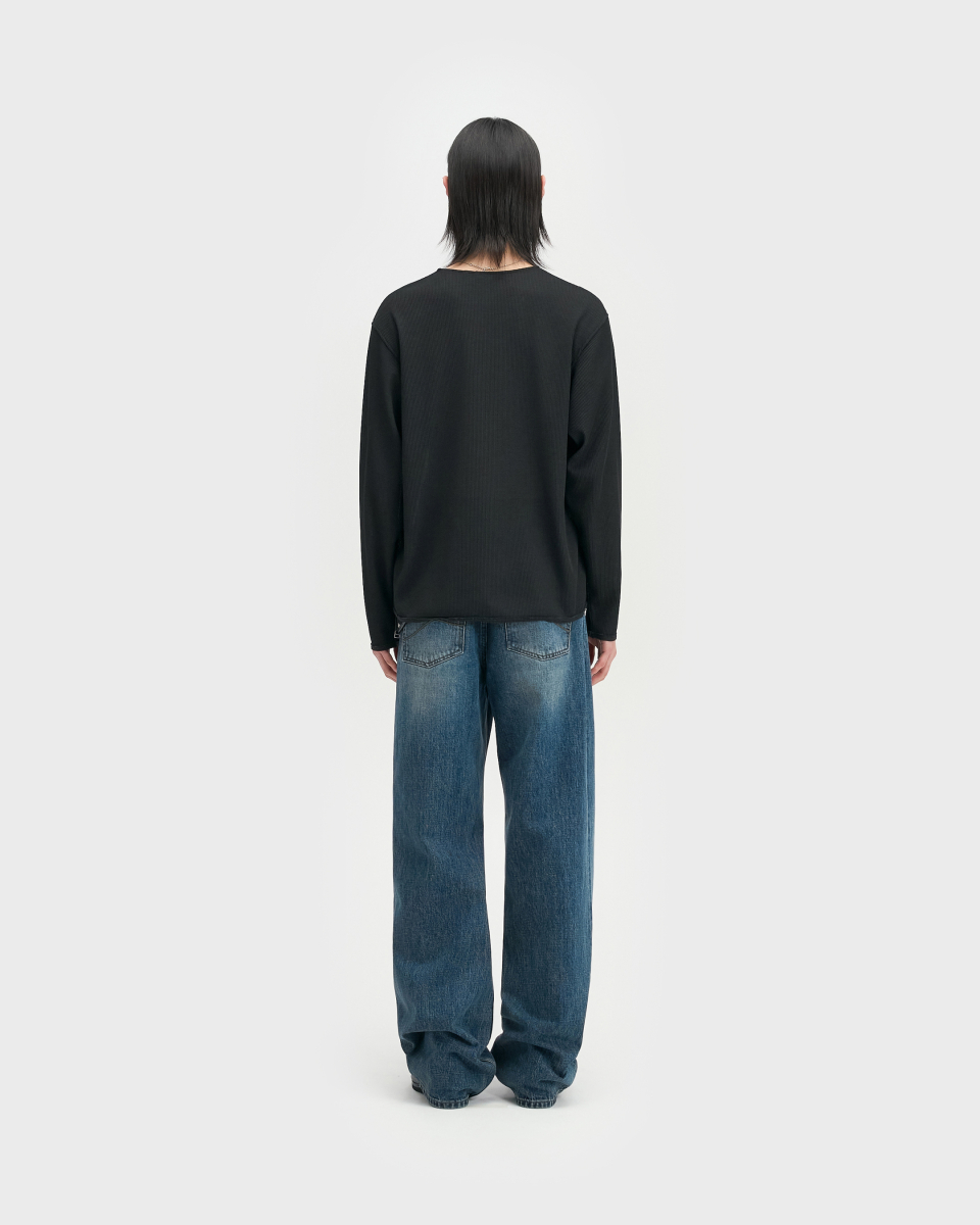 린넨 터치 원사의 드라이한 촉감과 멜란지 컬러가 돋보이는 롱슬리브. 가볍고 쾌적한 기능성 위에 불균일한 색감을 더해, 도시 환경 속에서도 빈티지한 깊이가 자연스럽게 드러나도록 설계된 아이템.