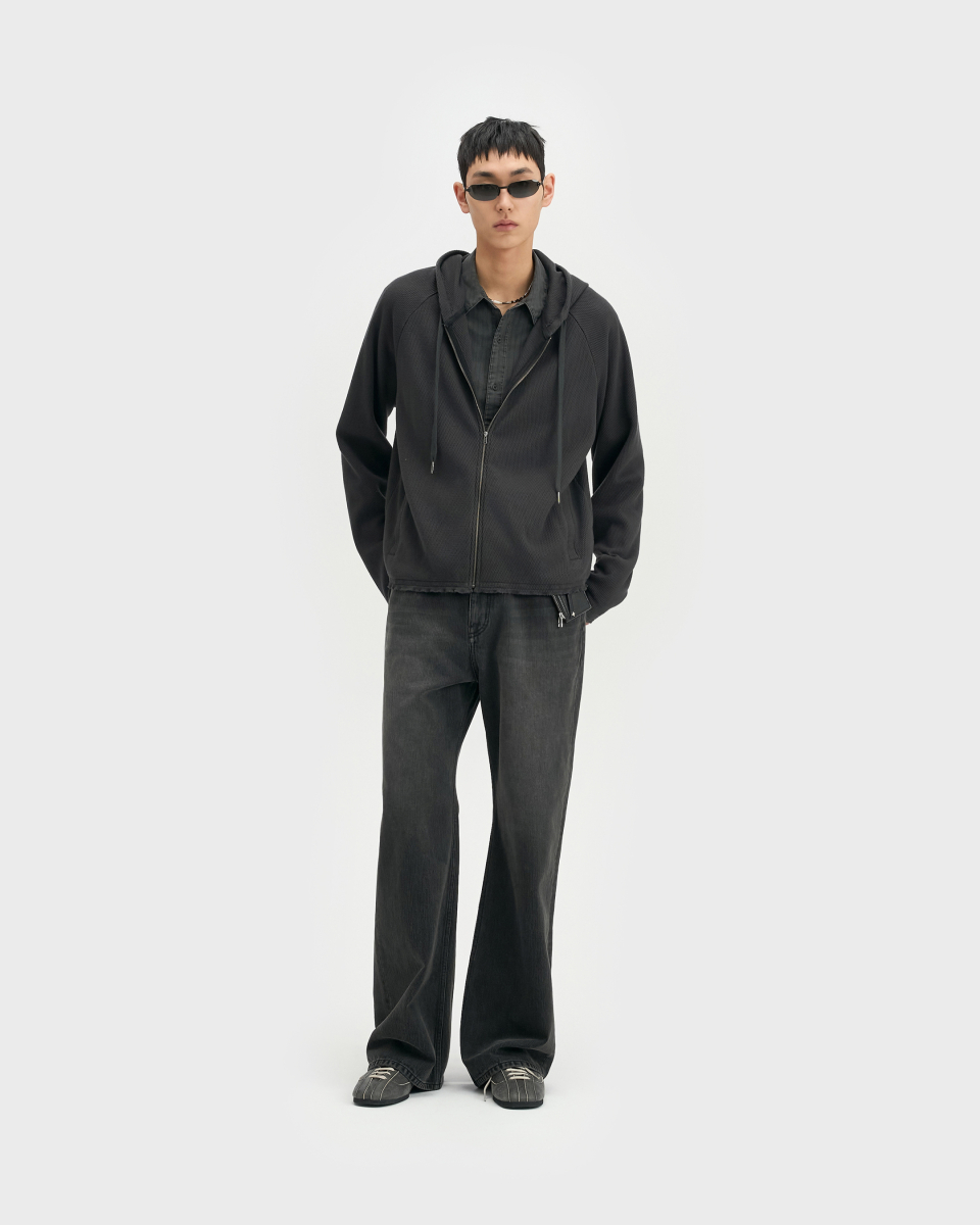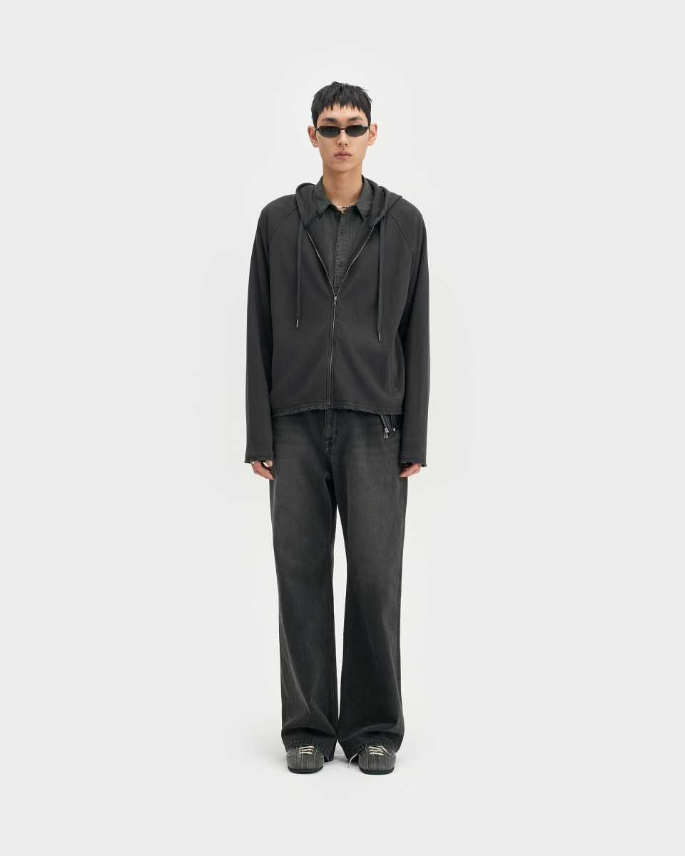 ※컷오프 디테일 특성상 착용 과정에서 자연스러운 올 풀림이 발생할 수 있습니다. 이는 제품의 무드를 완성하는 의도된 설계이며, 기호에 따라 가볍게 정리하여 착용하시길 권장합니다.