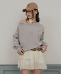 오프 숄더 로고 스웨트셔츠 - 그레이