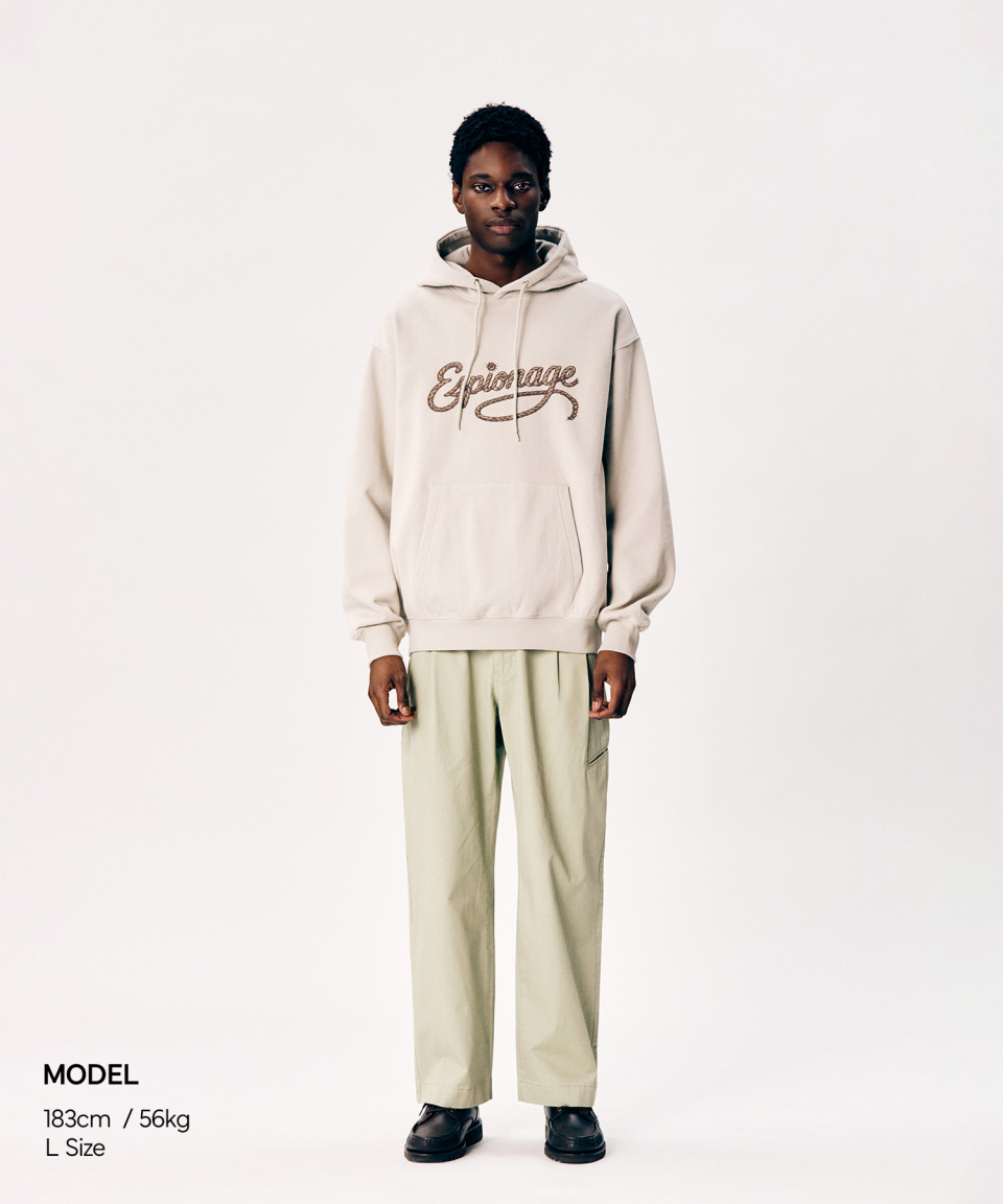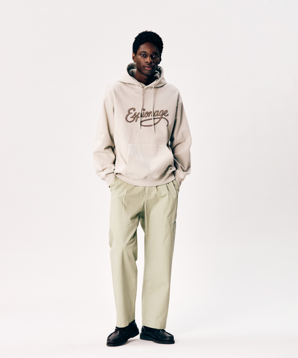 에스피오나지(ESPIONAGE)는 '밖을 보다' '숨겨져 있는 것을 발견한다'는 의미의 고대 프랑스어 ESPIRE에서 유래한 말로 지금은 타국의 비밀 정보를 수집하는 첩보 활동을 뜻하기도 합니다. 첩보 활동의 의미가 적진에서 은밀히 적들의 정보를 빼오는 것을 말하는 것처럼 에스피오나지가 만드는 아이템에는 숨겨져 있는 것을 찾아내는 과정을 포함하고 있습니다. 클래식, 밀리터리, 아웃도어 등 이미 만들어져 있는 의복을 베이스로 우리가 중요하게 생각하는 원단과 부자재, 기술, 핏 등의 요소들을 정확하게 탐구하고 수집해 조합, 재정의 혹은 재해석된 결과물을 만들고자 합니다. 사전적인 의미의 에스피오나지가 가지는 부정적인 첩보 활동의 이미지가 아닌 첩보 활동의 과정, 즉 본질에 대한 탐구와 조사 활동이라는 긍정적인 느낌을 전달하려 하며 수집된 정보를 하나의 작업물로 만들어내는 일련의 과정과 그렇게 완성한 에스피오나지의 아이템을 통해 다시 만드는 과정을 다시 유추하려는 생각들 모두 에스피오나지입니다.