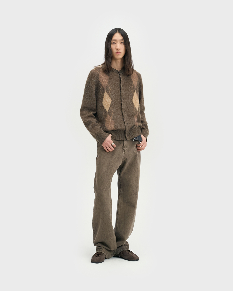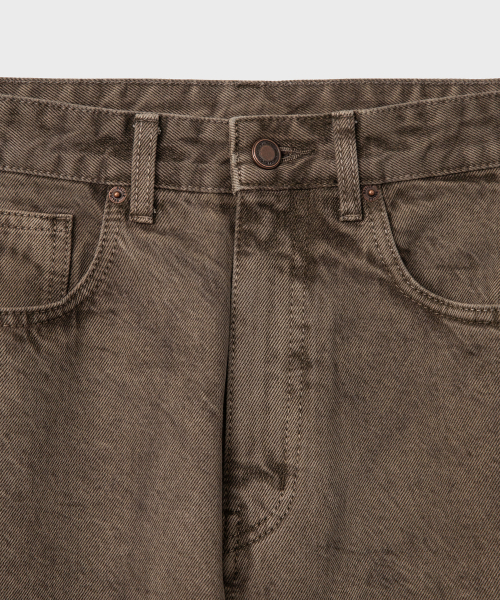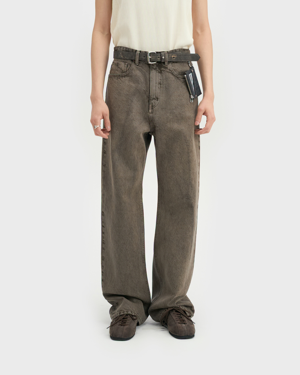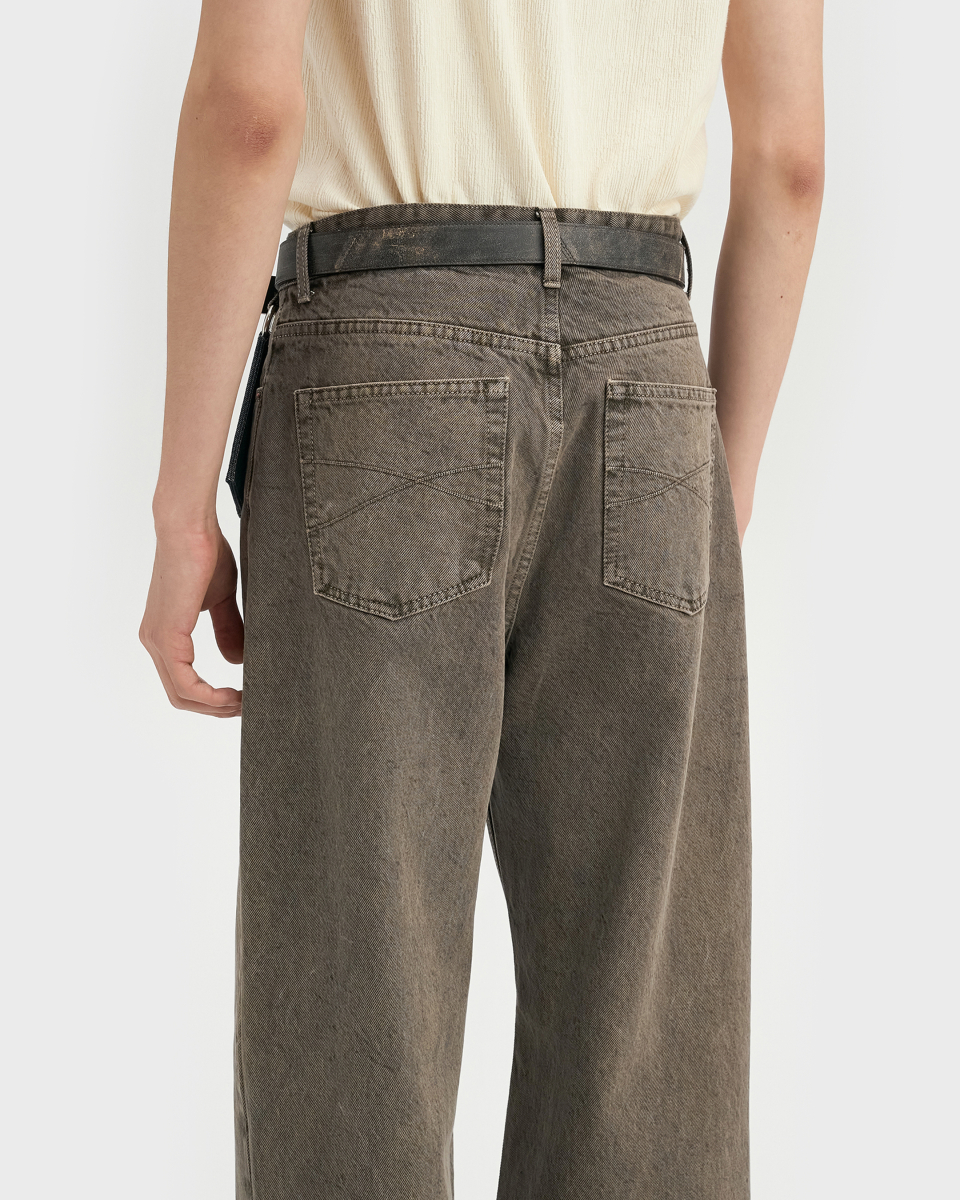 트루 와이드 핏에서 한 겹 덜어낸 ‘적당한 느낌의 간결한 와이드 핏‘. 허리 위치는 배꼽 아래 팬티 라인을 덮는 정도(트루 와이드보다 약 1cm 위)가 적당하며, 신발 굽선에 맞추어 밑단이 살짝 바닥에 스치는 기장으로 설계.
