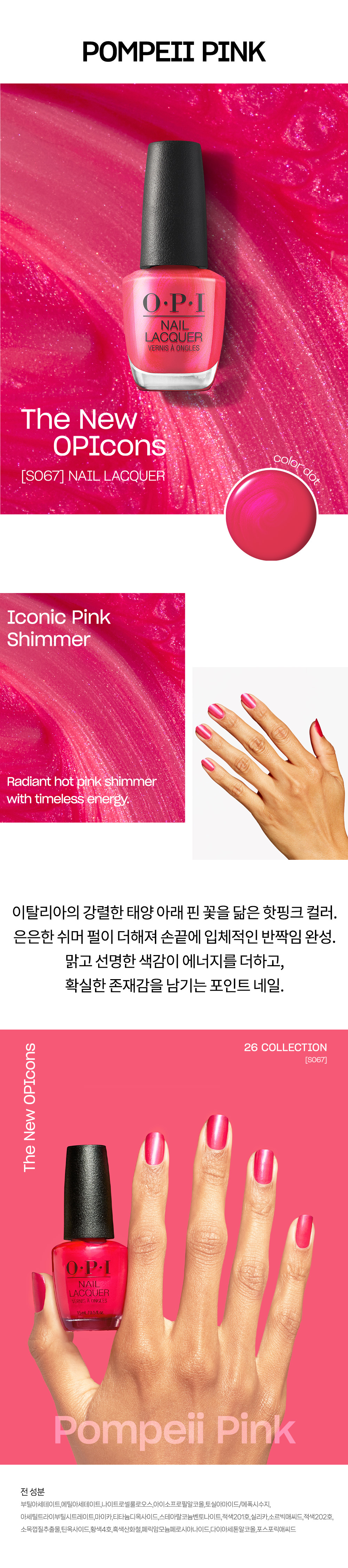 오피아이(O.P.I)는 손 끝에서 본연의 아름다움이 완성 되도록, 누구나 스스로에게 어울리는 컬러를 찾을 수 있도록 세상의 모든 컬러를 재현해낼 수 있는 단 하나의 브랜드입니다.