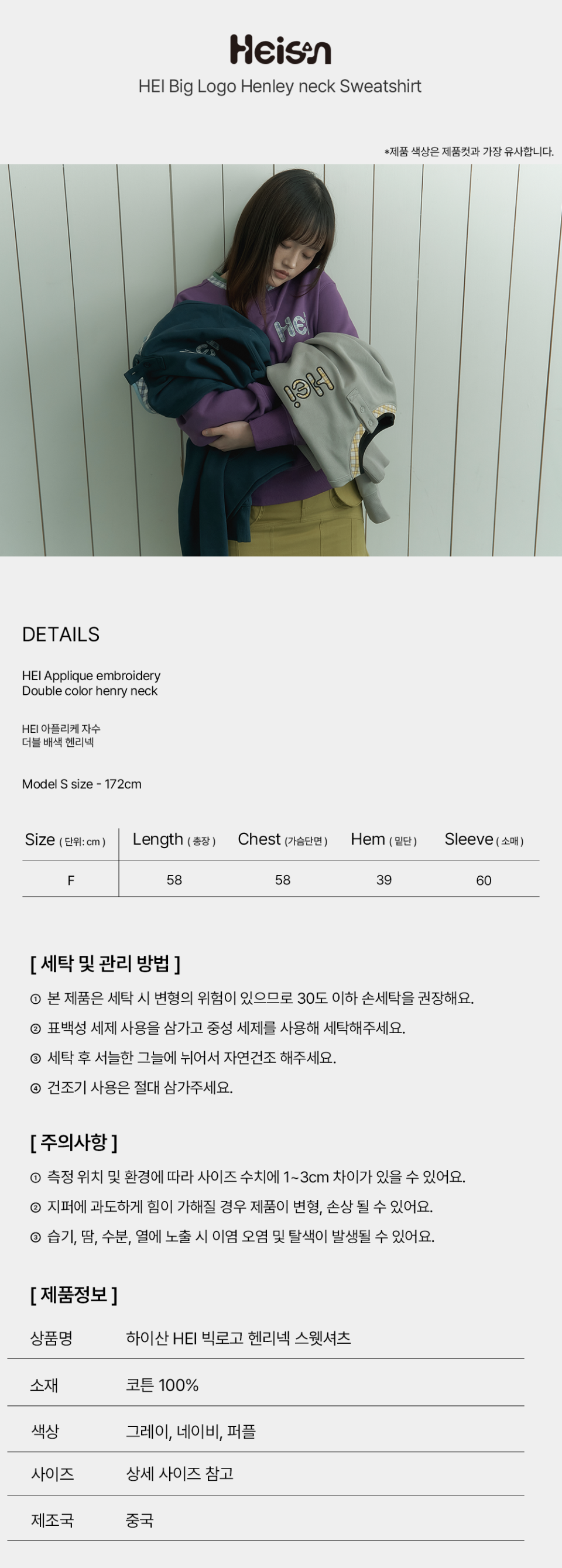 HEI 빅로고 헨리넥 스웻셔츠 퍼플