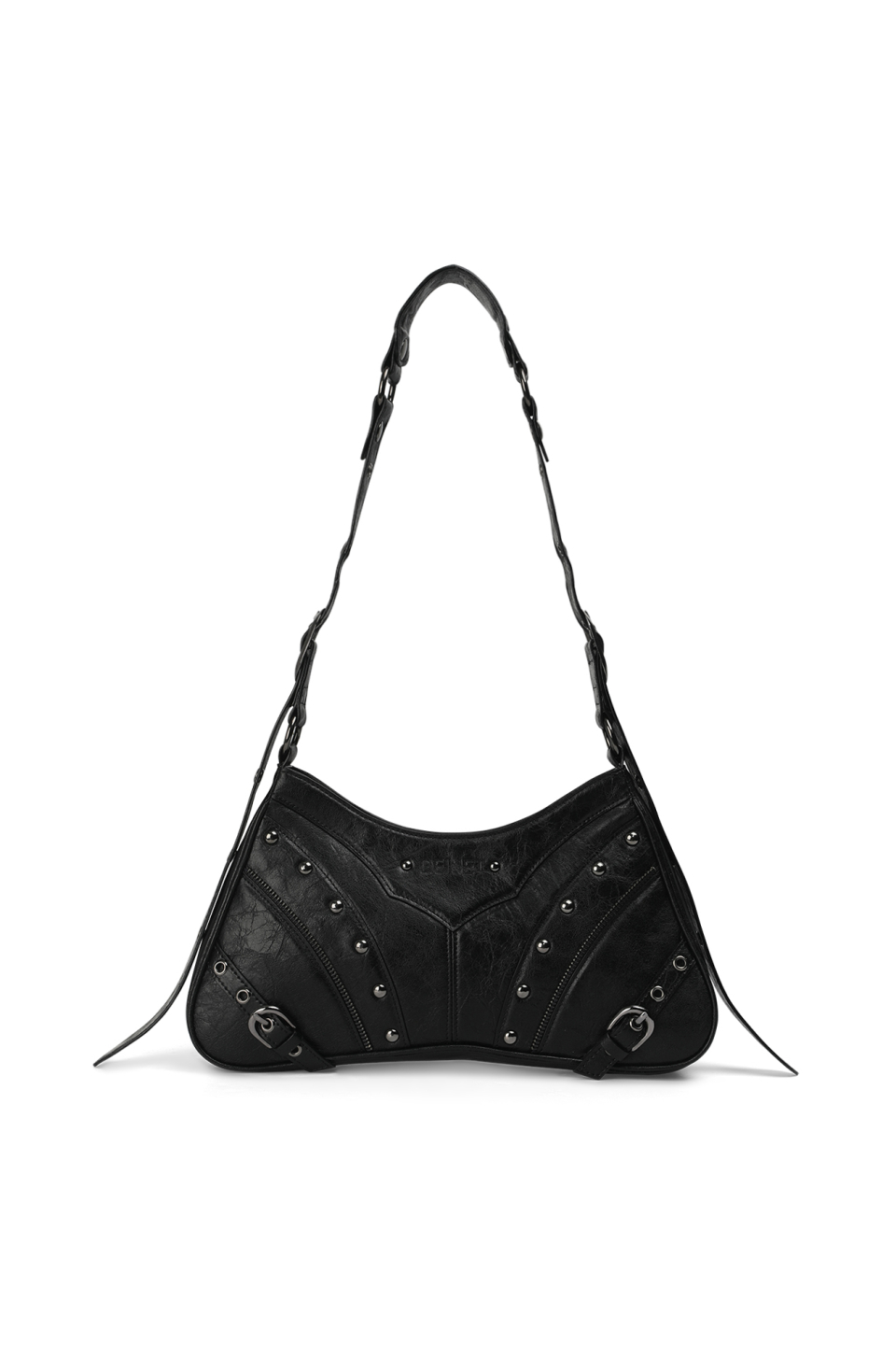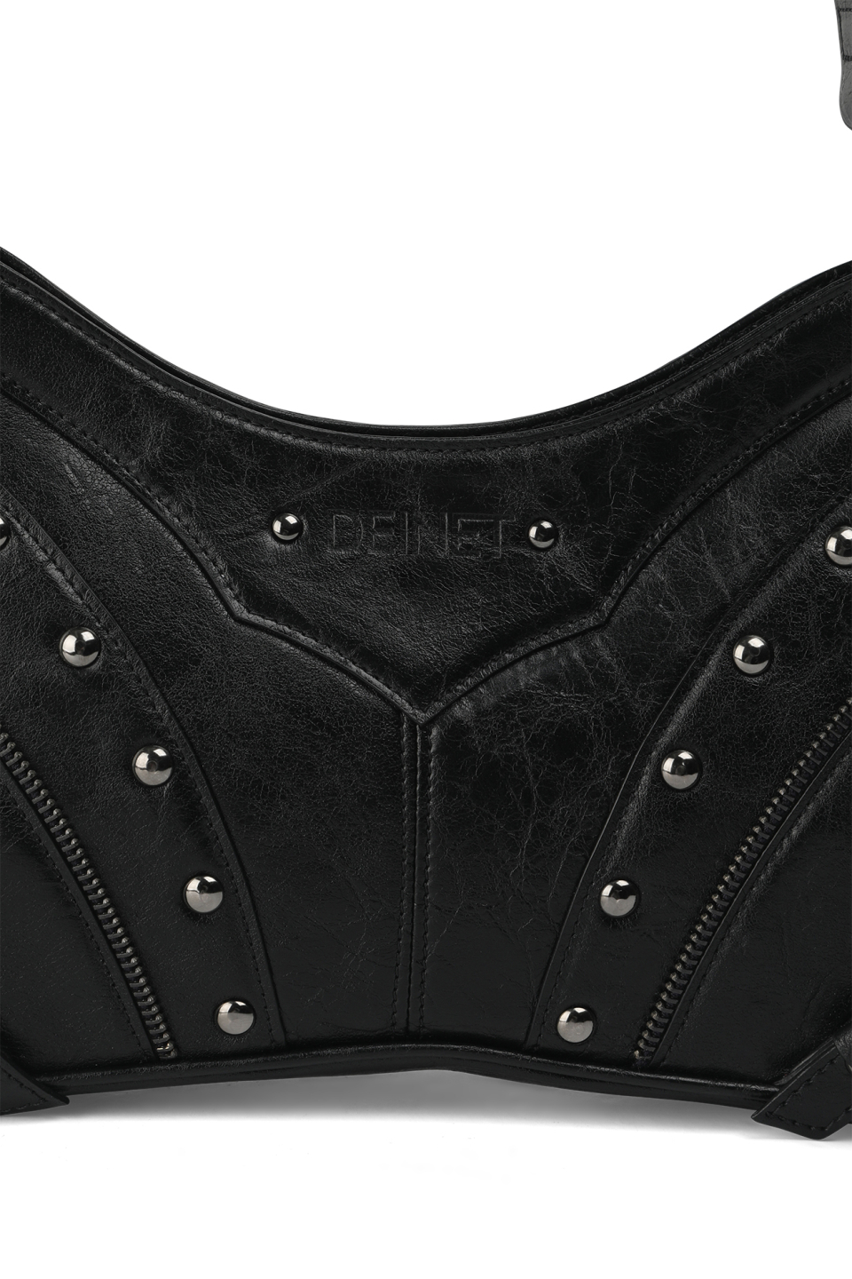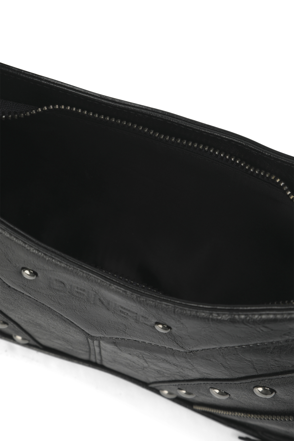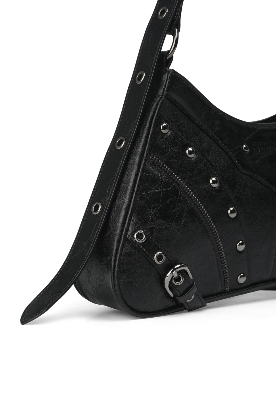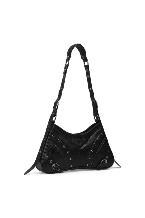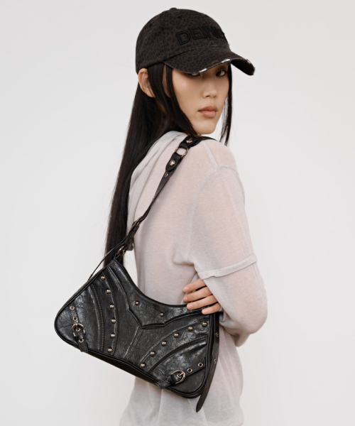 STUD ZIPPER POINT MINI SHOULDER BAG IN BLACK