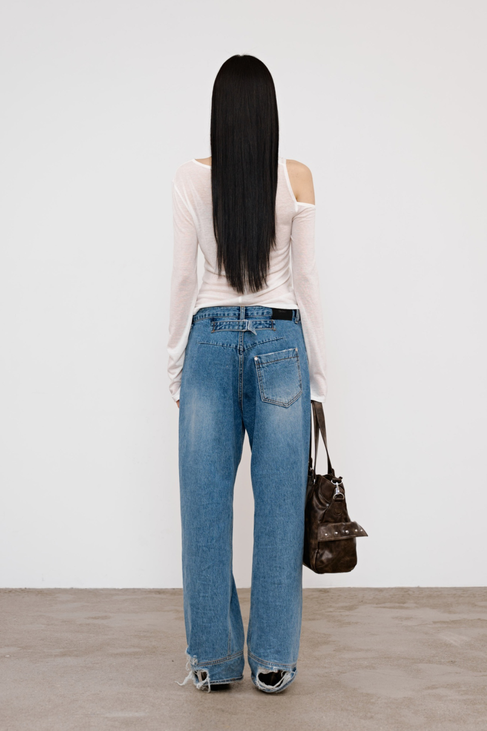 오프숄더 레터링 그래픽 후드 긴팔 티셔츠 GREY