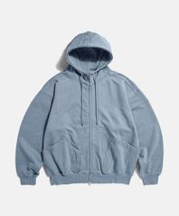 Ribbed Shoulder Zip-Up Hoodie Misty Blue