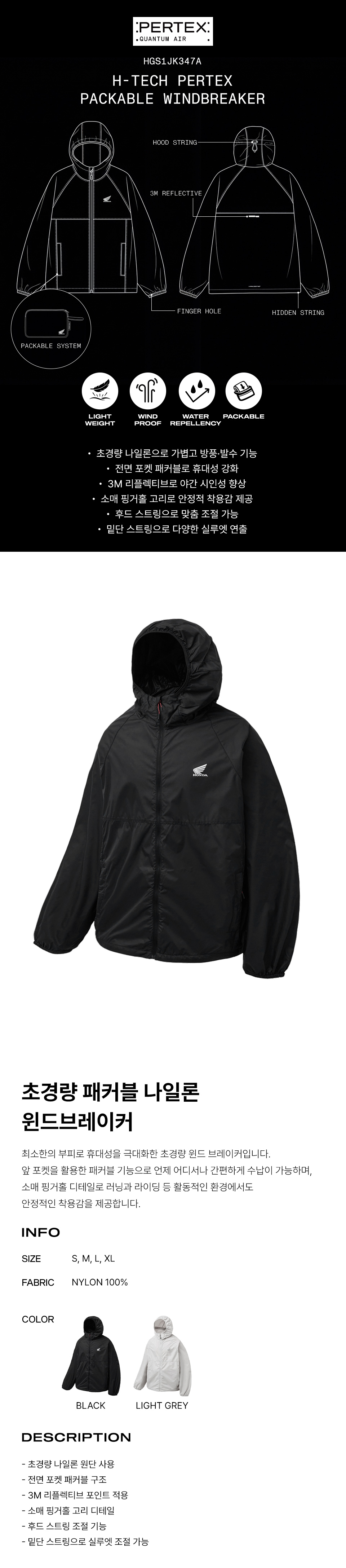 H-Tech Pertex Packable Windbreaker Black