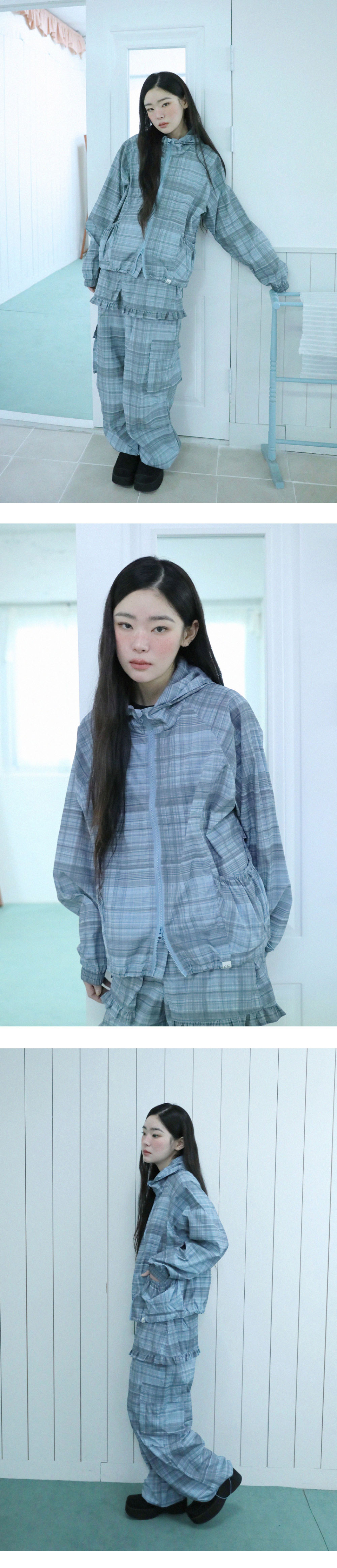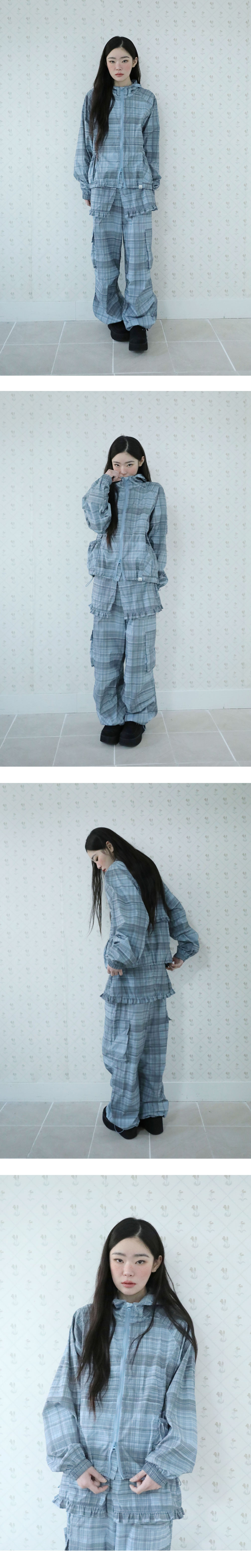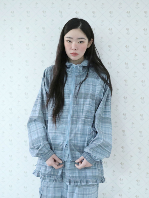 체크 원단으로 제작된 윈드브레이커 자켓입니다.