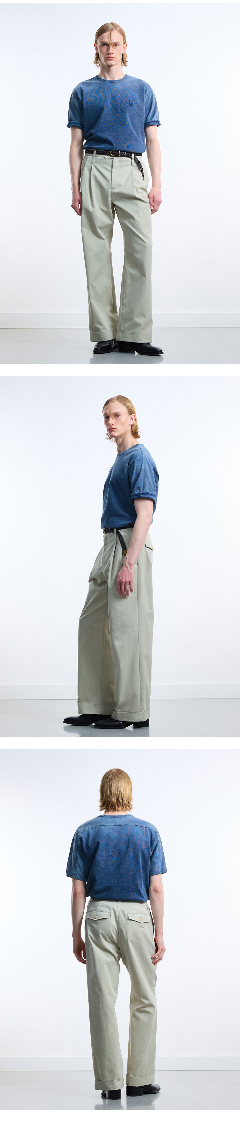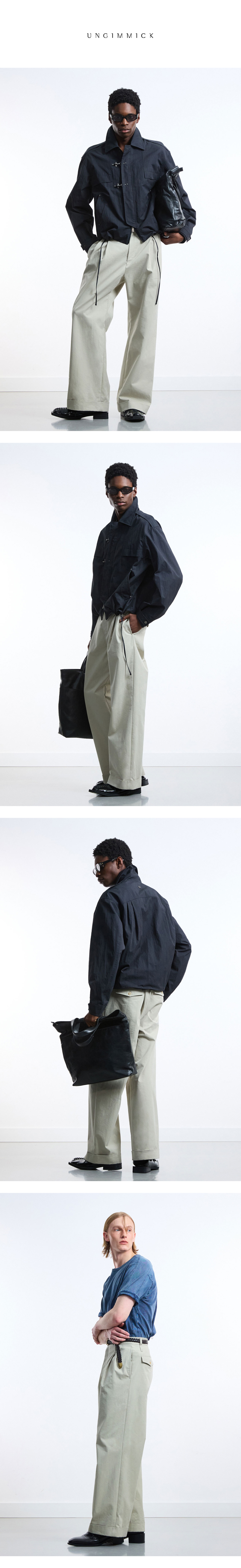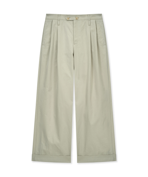 PLEATED WIDE CHINO PANTS (LIGHT BEIGE)