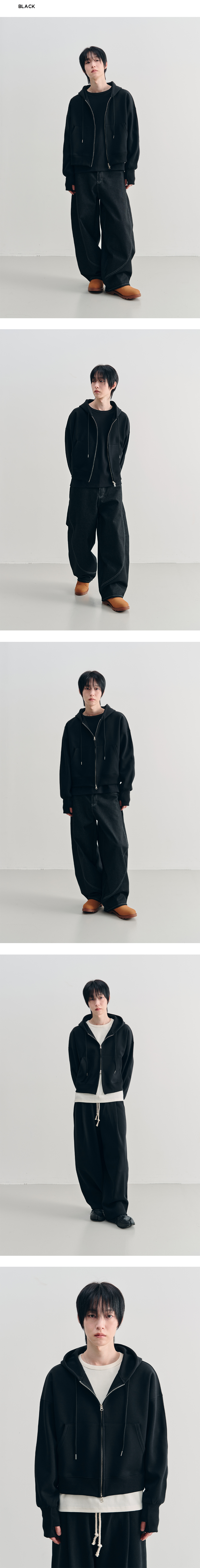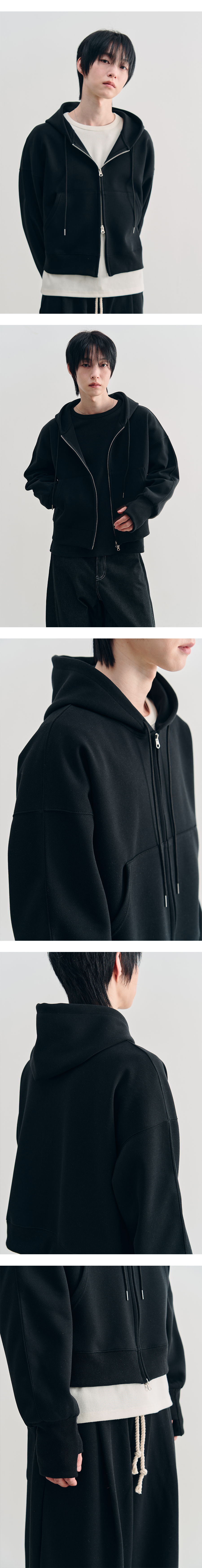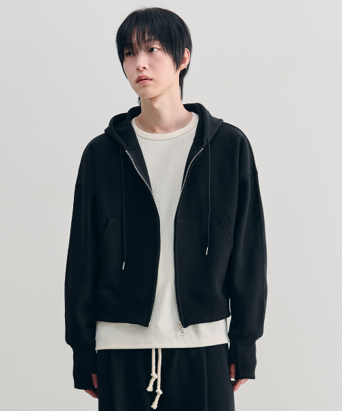컴바인 크롭 핑거홀 후드 집업 [BLACK]
