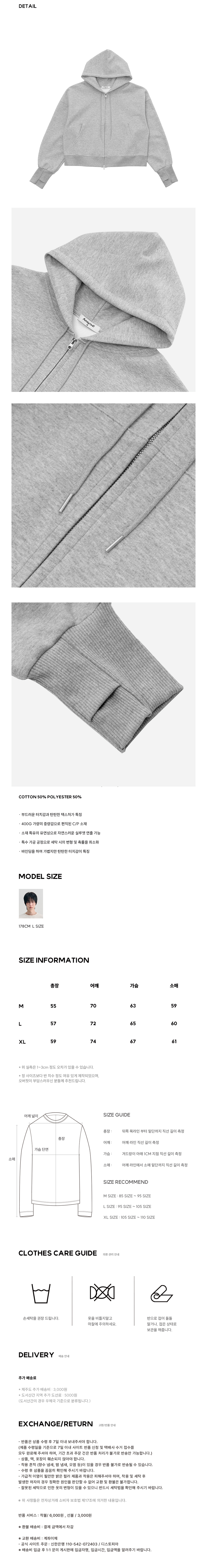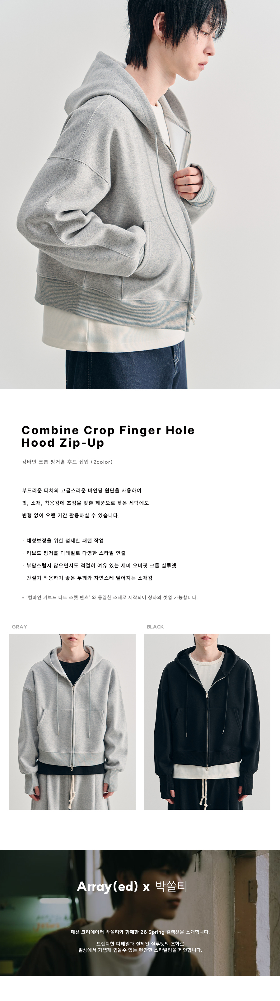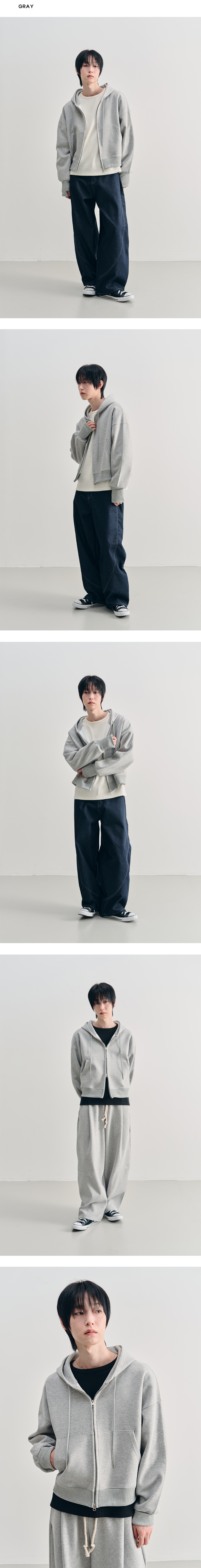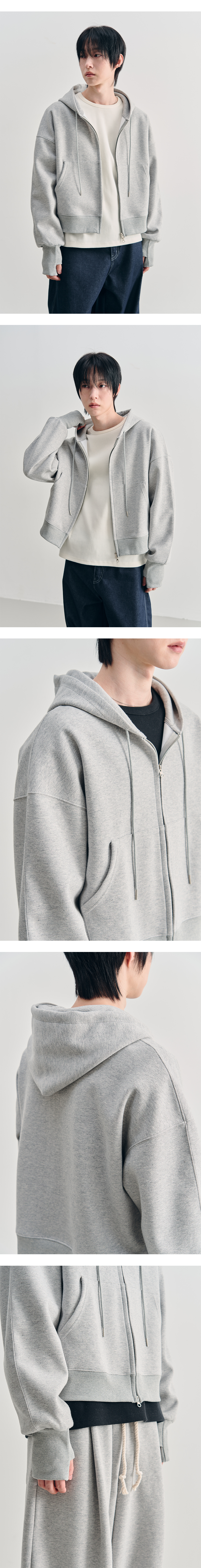컴바인 크롭 핑거홀 후드 집업 [GRAY]