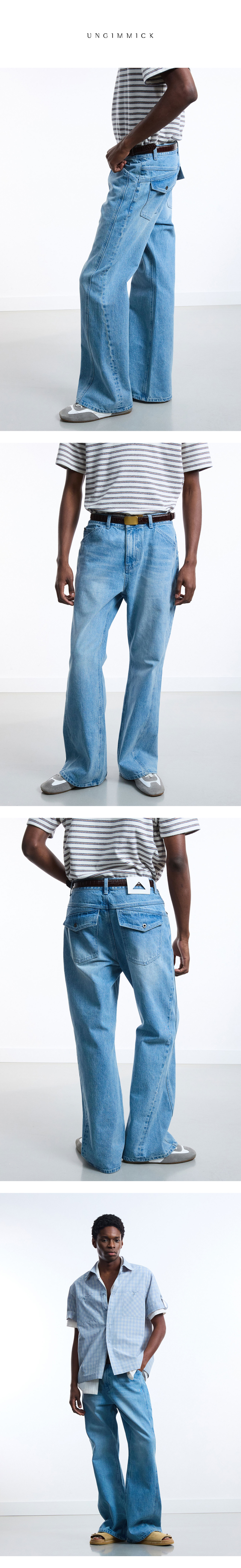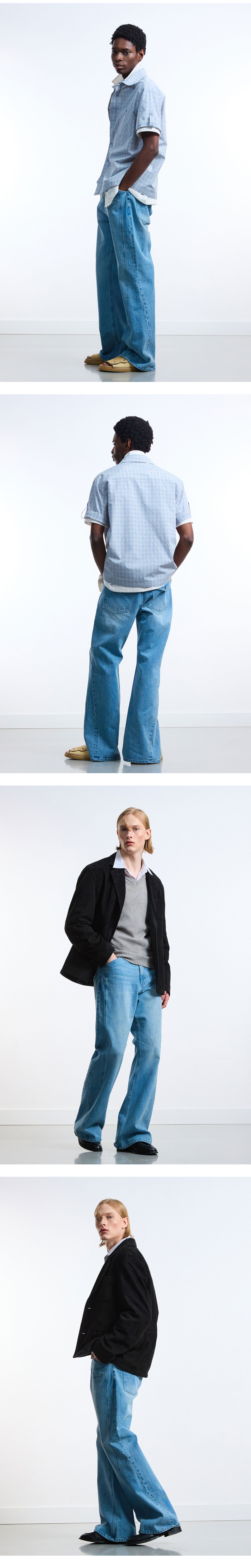 SLUB FLARED DENIM PANTS (LIGHT BLUE)